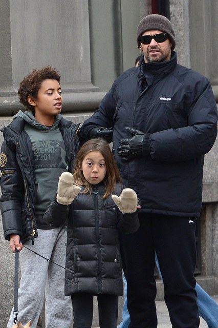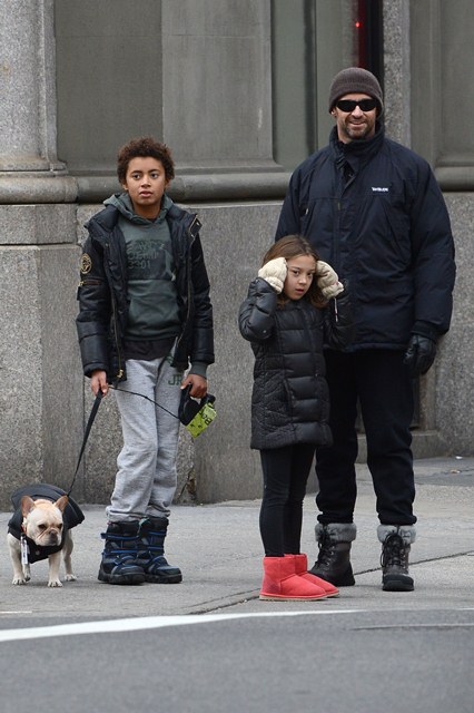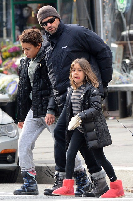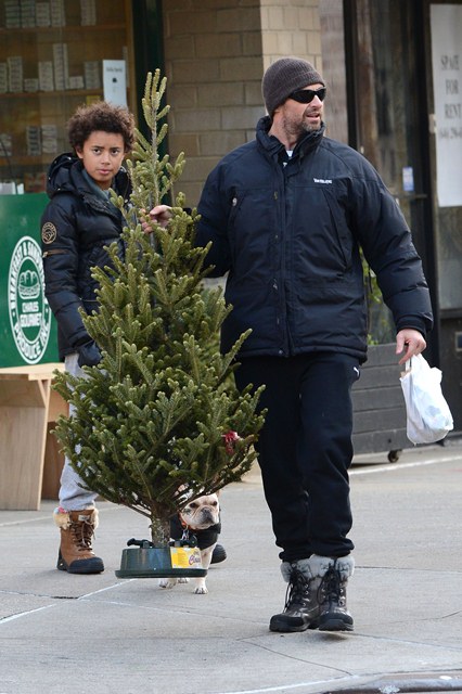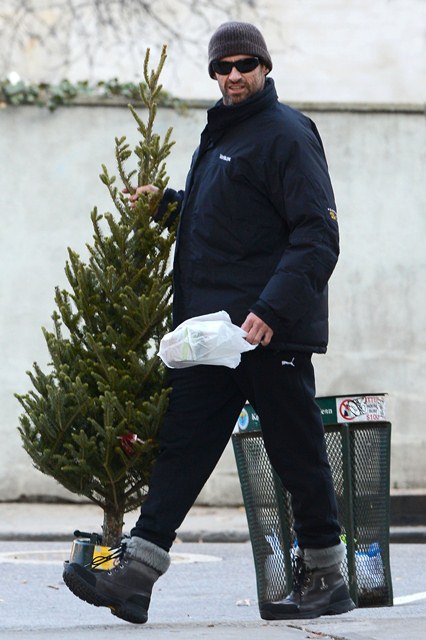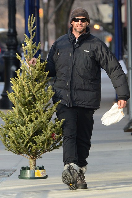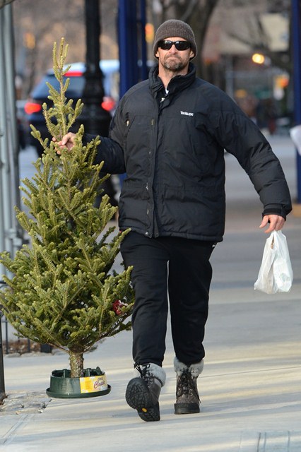 Attached - Hugh Jackman preparing for Christmas with his kids in New York yesterday.