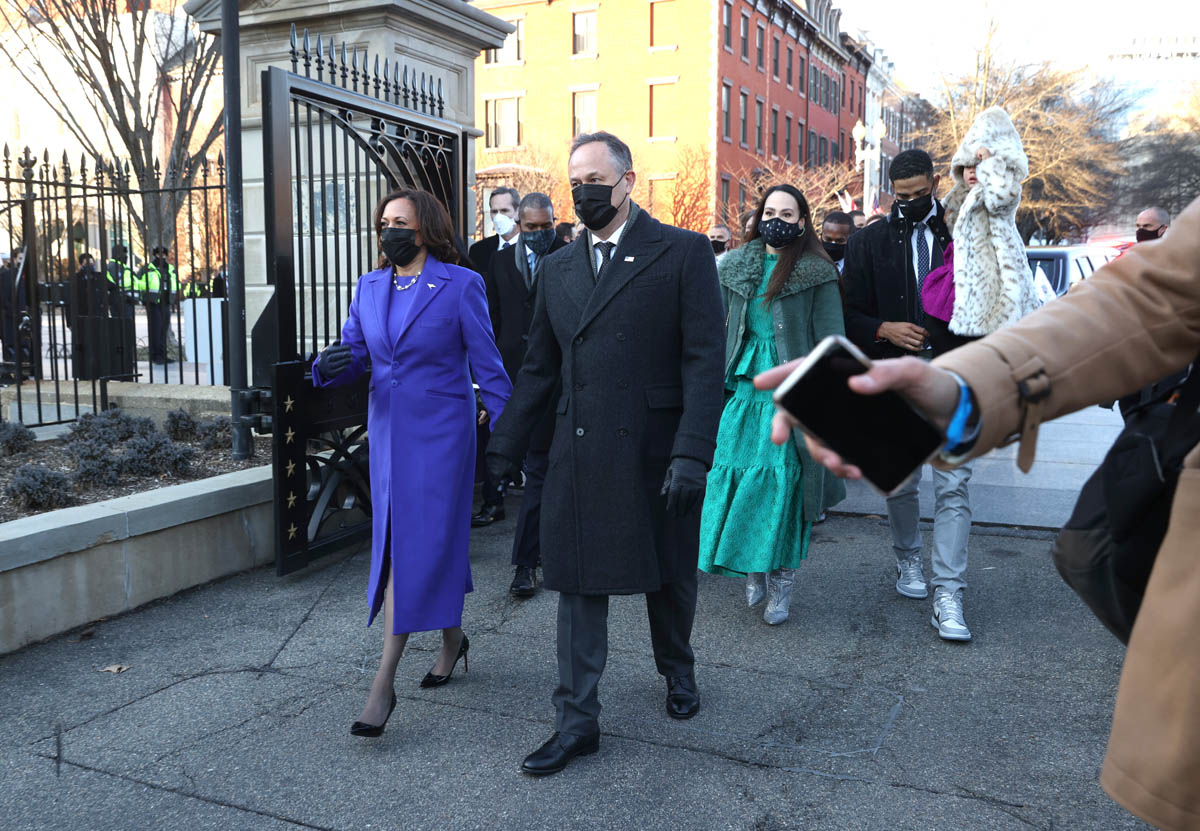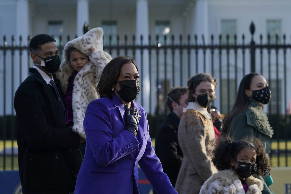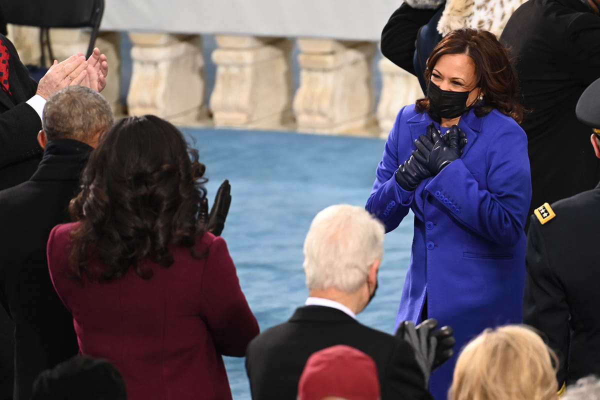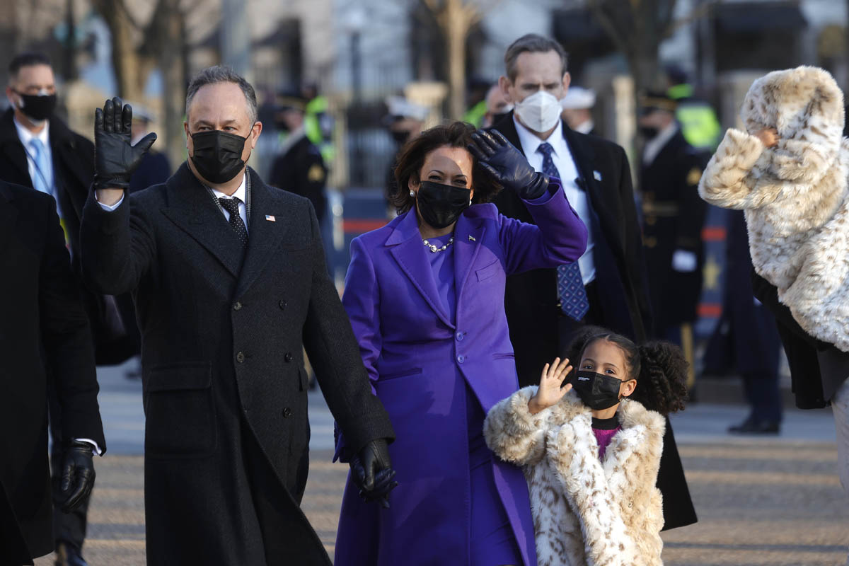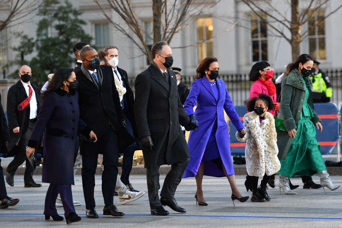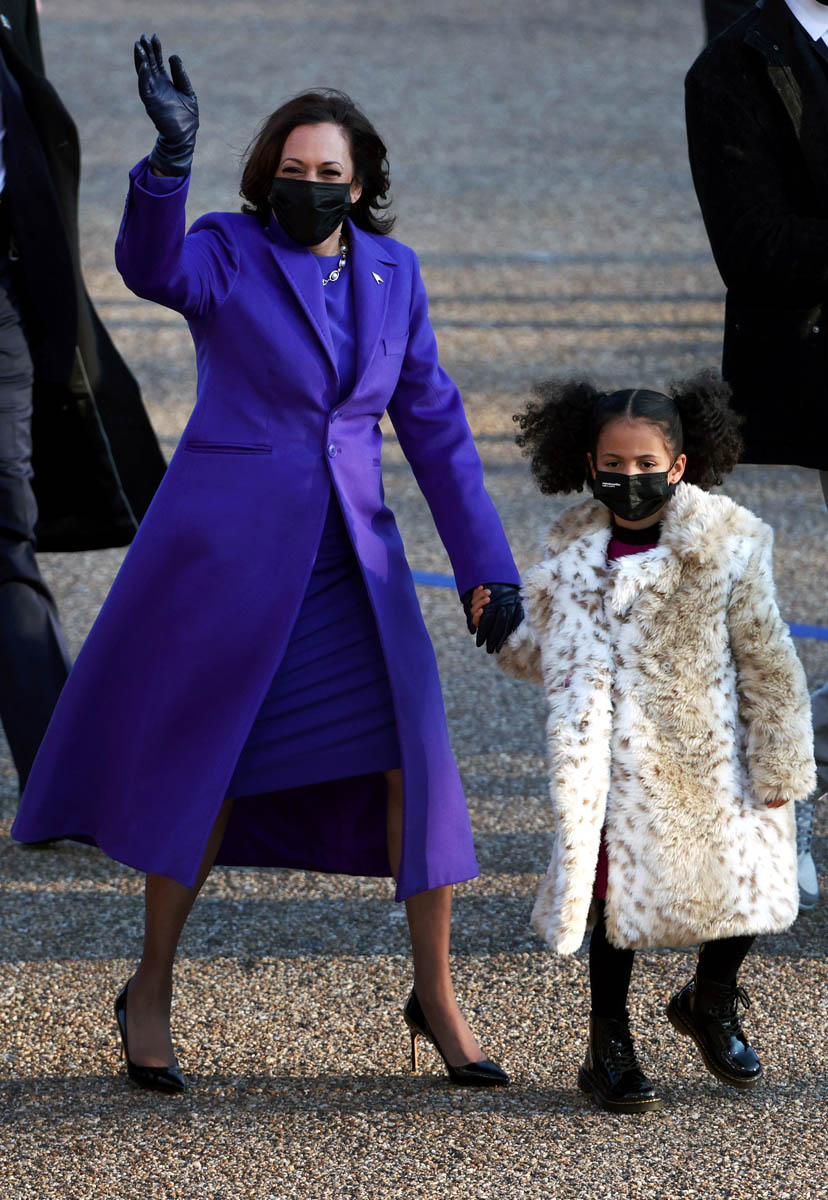 Also attached – members of her family, who have also emerged as fashion stars. Her niece, Meena Harris, wore a green Coach outfit with silver boots; Meena’s husband, Nikolas Ajagu went viral for his Dior Jordans.