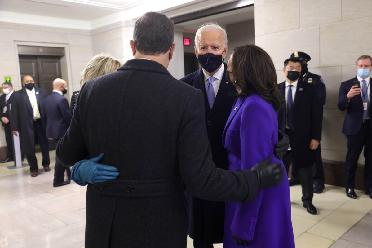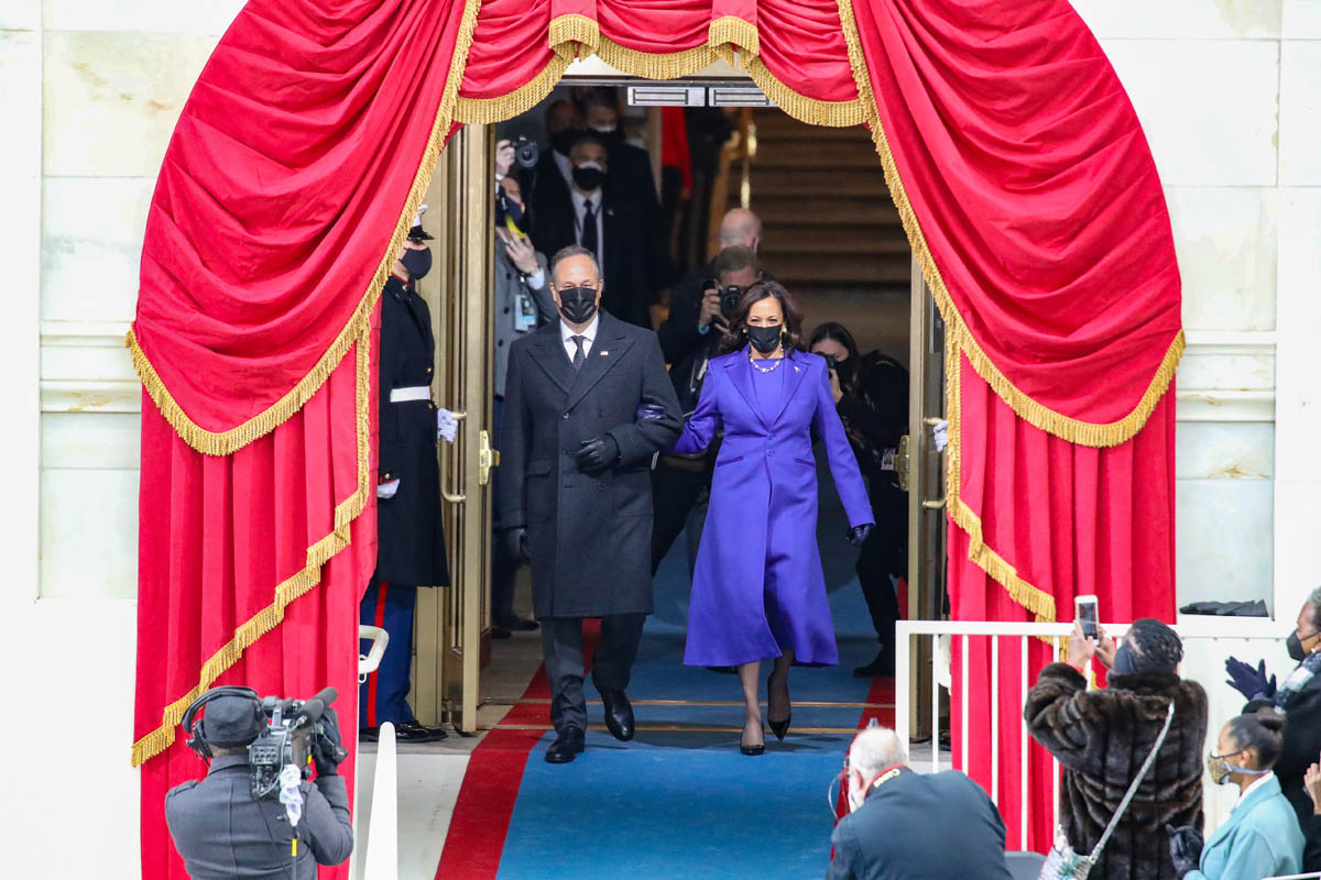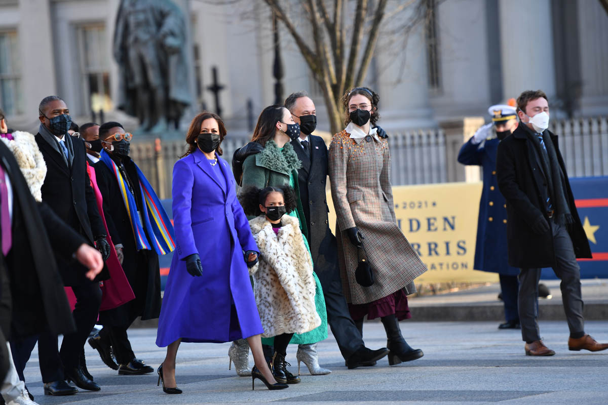Amongst the celebration of the inauguration, there have also been many breakdowns of Madame Vice President’s wardrobe during the swearing-in ceremony. This can feel shallow, but let us remember that the last time a woman in the vicinity of the presidency used fashion to make a statement, it was deeply unpleasant. In comparison, the presidential party’s inauguration day ensembles felt coordinated and conscientious. President Biden and Second Gentleman Doug Emhoff both wore Ralph Lauren suits—a classic American designer for a classic American moment. Dr. Biden wore a blue ensemble by Markarian, a sustainability-minded label run by Alexandra O’Neill. And Madame Vice President wore a royal purple ensemble by Christopher John Rogers.