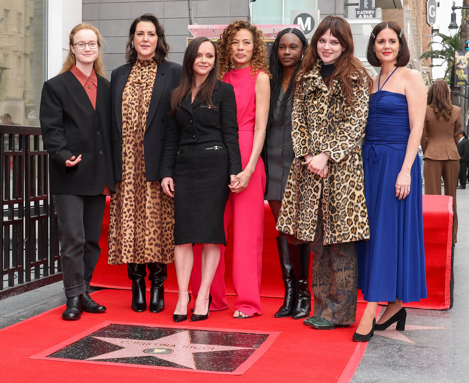 Ricci was joined at her Walk of Fame ceremony by her Yellowjackets co-stars Liv Hewson, Tawny Cypress, Melanie Lynskey, Nia Sondaya, Ashley Sutton, and Sophie Thatcher. Interesting that Sophie Thatcher and Melanie Lynskey both had Animal Print Ideas for their fits. And speaking of Melanie Lynskey and great fits, did you see in her red at the Vanity Fair Oscars party?