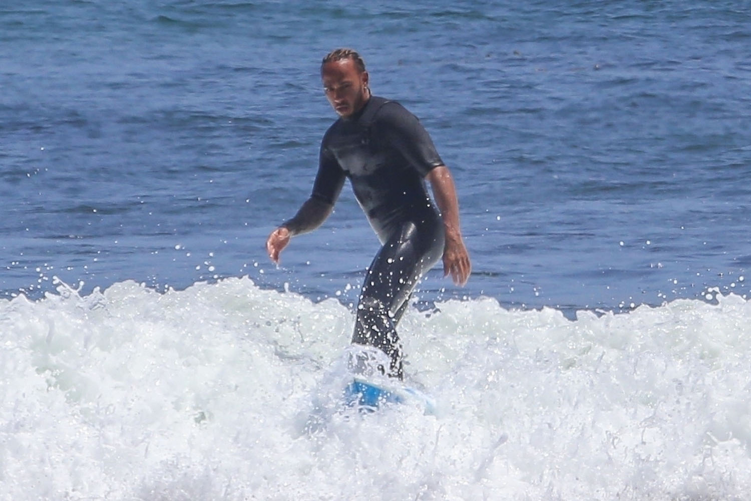Meanwhile, Lewis is doing what he needs to do to stay joyful and focused in spite of all the f-ckery he continues to endure. Here he is surfing in Malibu on Monday. Seems like he’s home now though and getting ready for Silverstone.