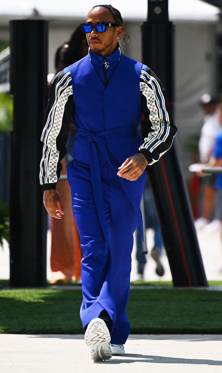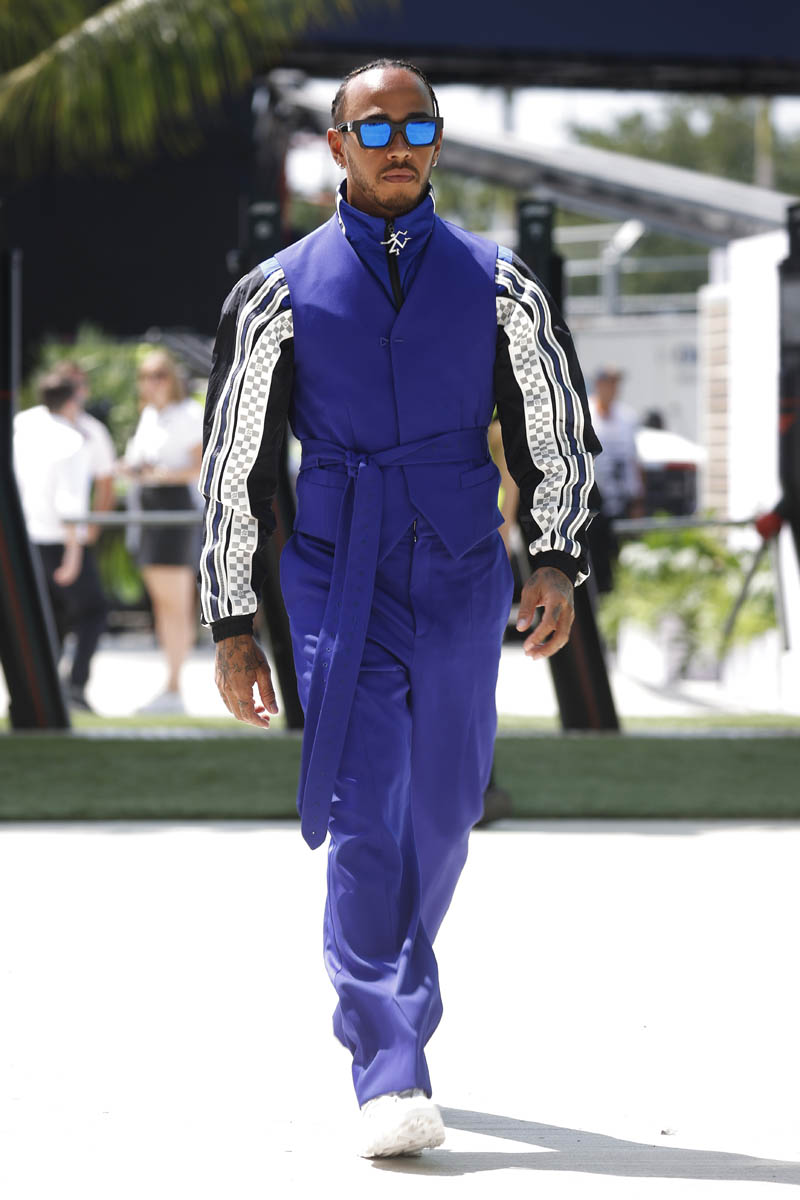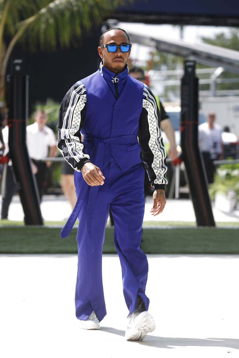 Those green pants on the links the other day were fire. And yesterday he stepped out in Louis Vuitton at the paddock and in the same fit later on at a Mercedes event with will.i.am. There are no doubt multiple looks planned for this weekend and I’m sure he and Law Roach would have had Miami specifically in mind when deciding on his wardrobe. Can’t wait to see the rest of it.