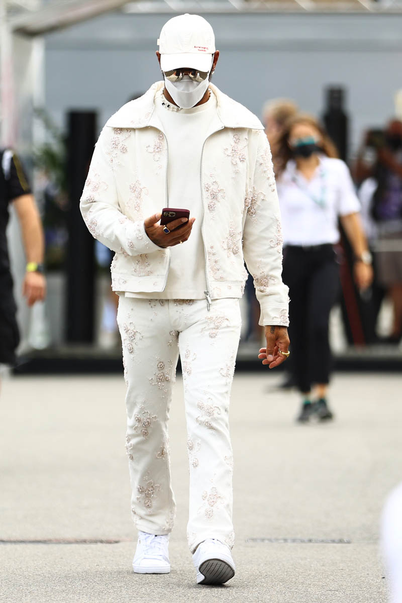 Back to Lewis though and his Italian Grand Prix wardrobe. Looks like he’s keeping it light and white this weekend because this is today’s outfit, ahead of qualifying: