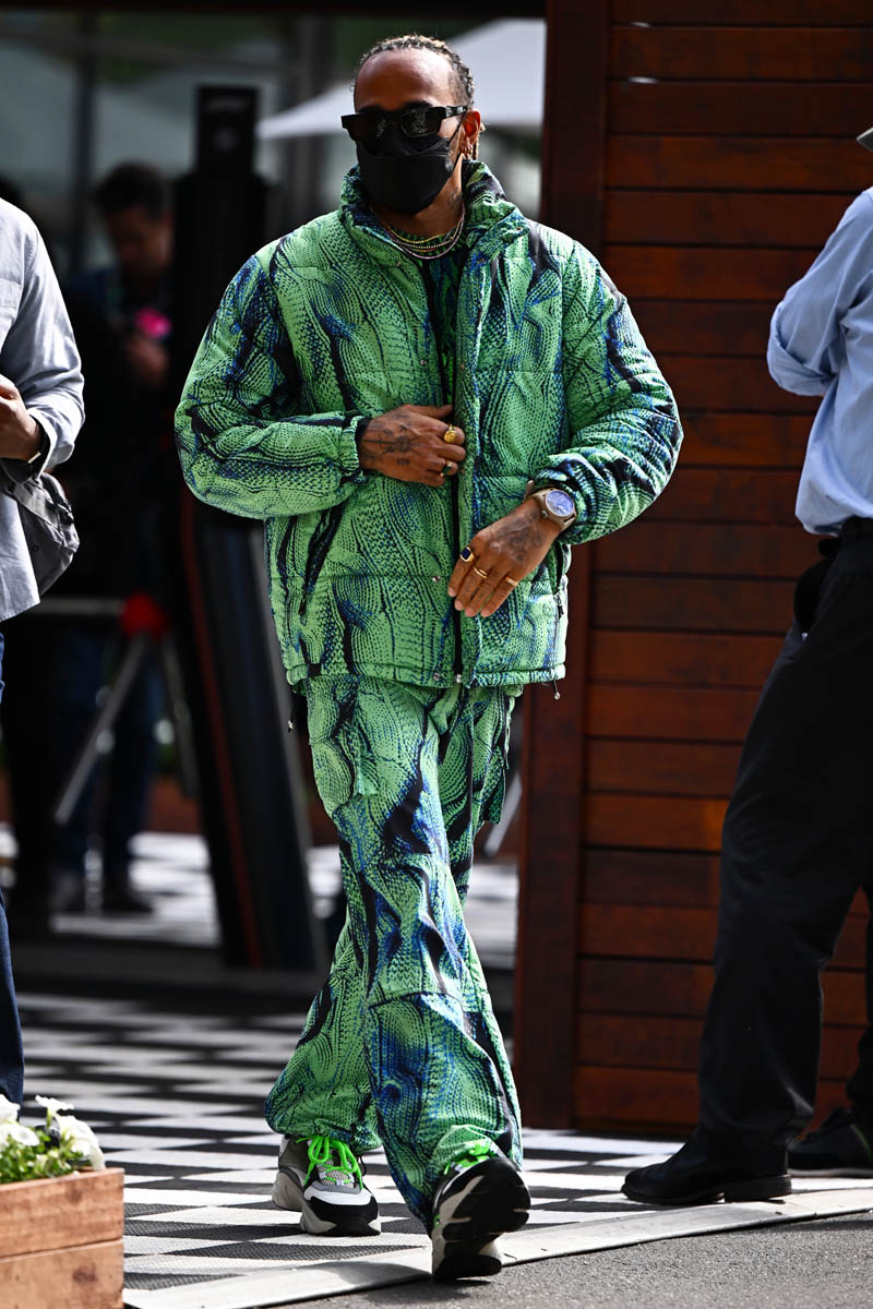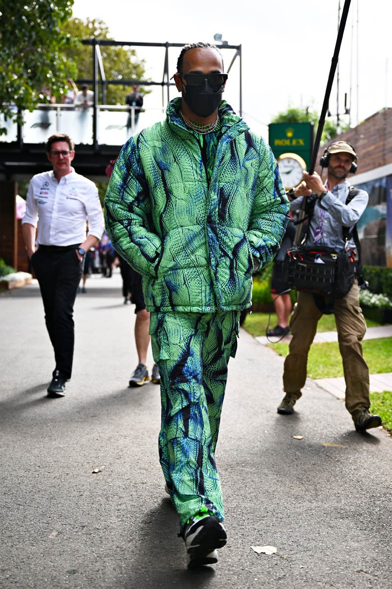 But at least the fashion isn’t a disappointment. Lewis wore a bright green tracksuit on his runway yesterday – not exactly the official green and gold of Australia, but green nonetheless to mark the return of Formula One to Melbourne after the 2020 race was cancelled because of COVID. And what a difference two years makes.