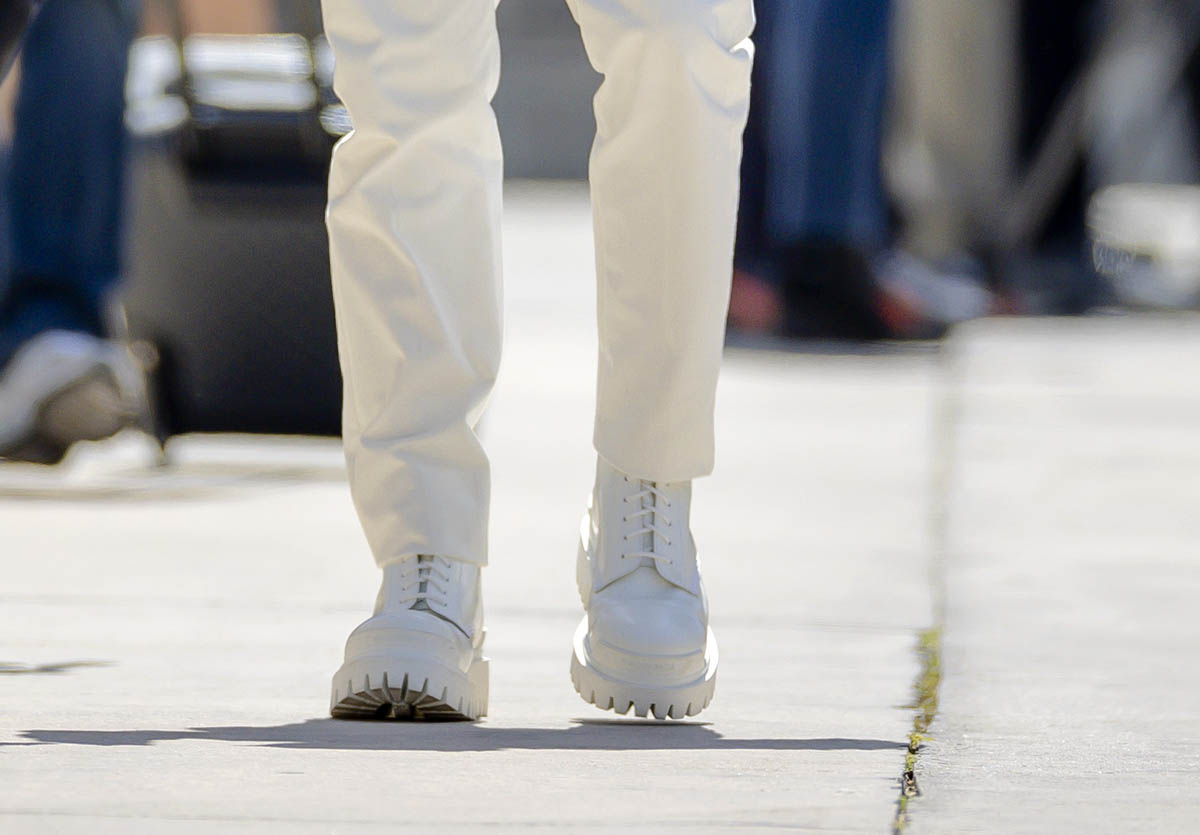 Yesterday, Lewis arrived on the paddock runway in red – a bomber and matching pants with white lug sole Balenciaga boots. As we all know, Lewis works with Law Roach, and Law posted the fit to his IG; you can see the difference between how Lewis showed the clothes on his runway and how the look was sent down the runway in Paris: