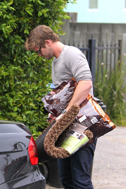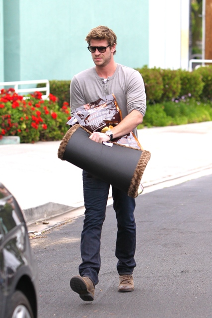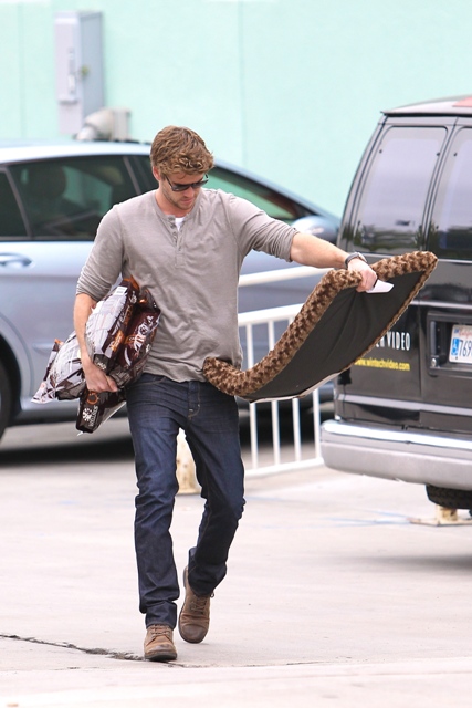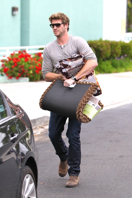 Here’s Liam yesterday leaving a pet store after buying food and what appears to be a new mat/bed. Maybe their puppy is allowed to sleep outside of its crate now.