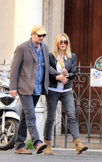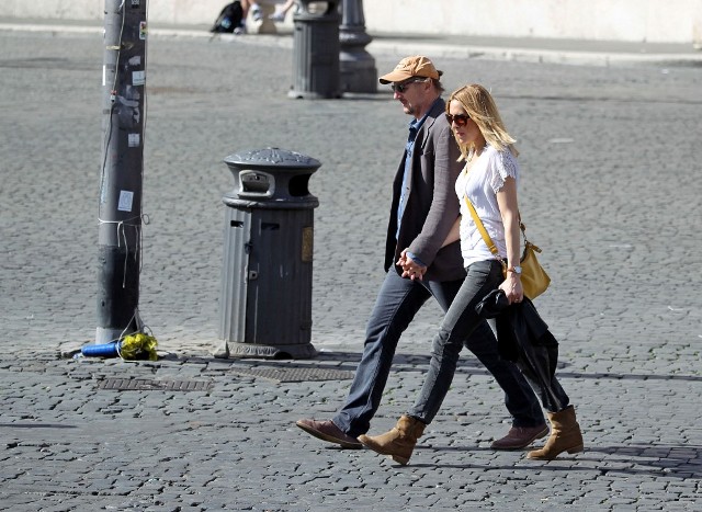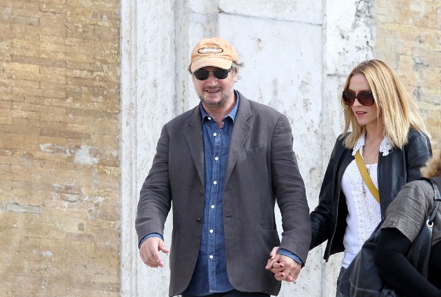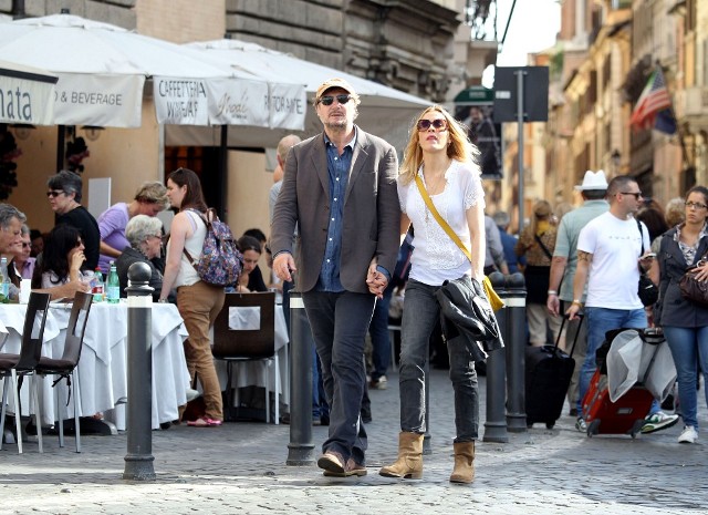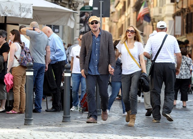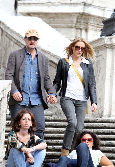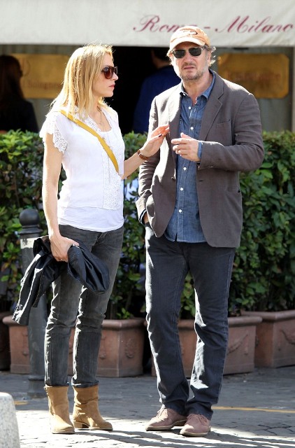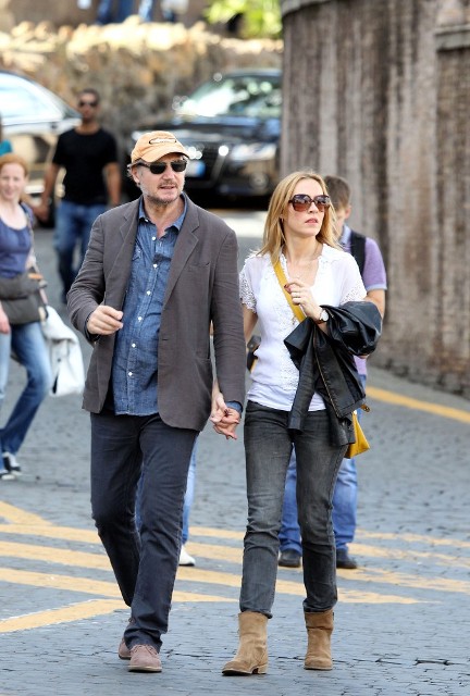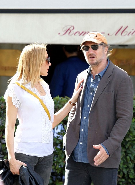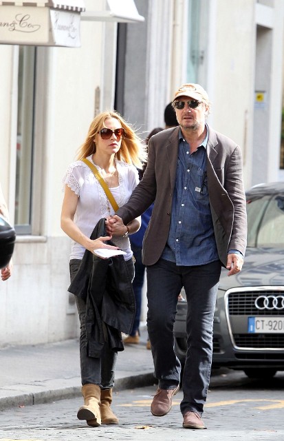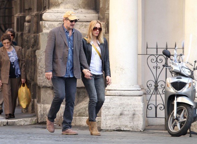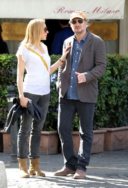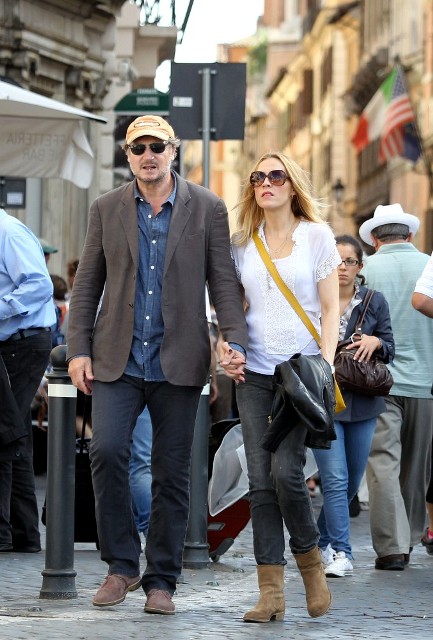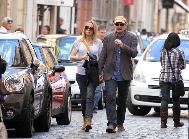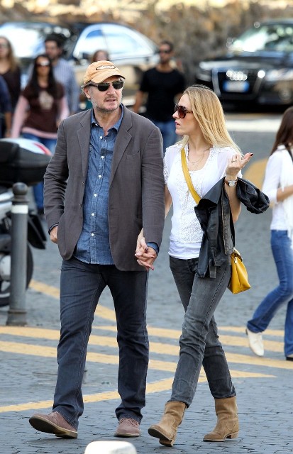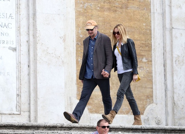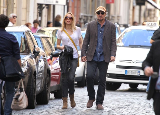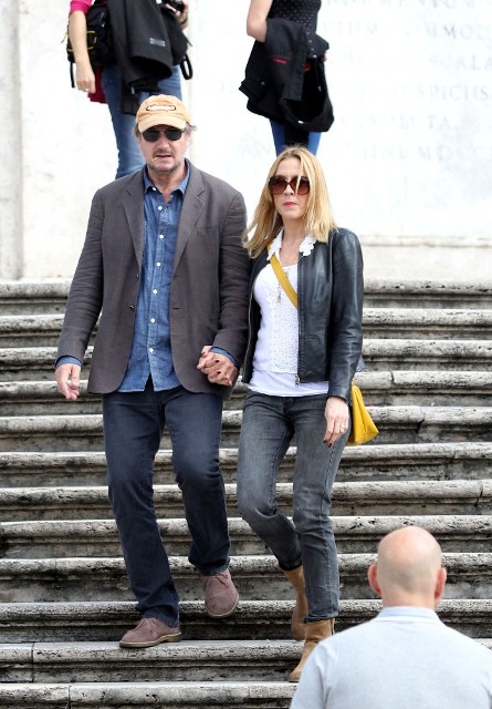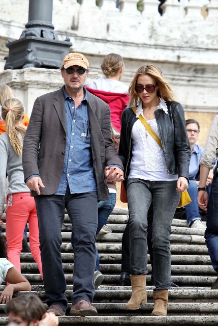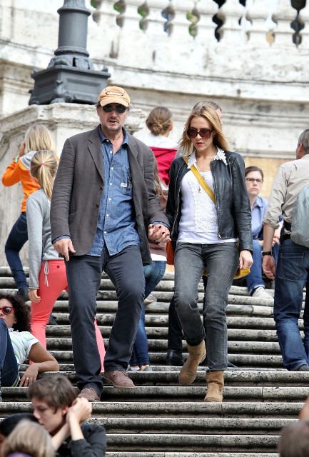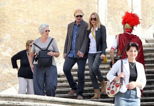 Well, not really. He’s there to work. But there’s always down time. And Liam Neeson is enjoying his with girlfriend Freya St Johnston. They’ve been together a year and a half. Here they on the Spanish steps and at the Piazza del Popolo while he gets the weekend off from shooting Third Person.
