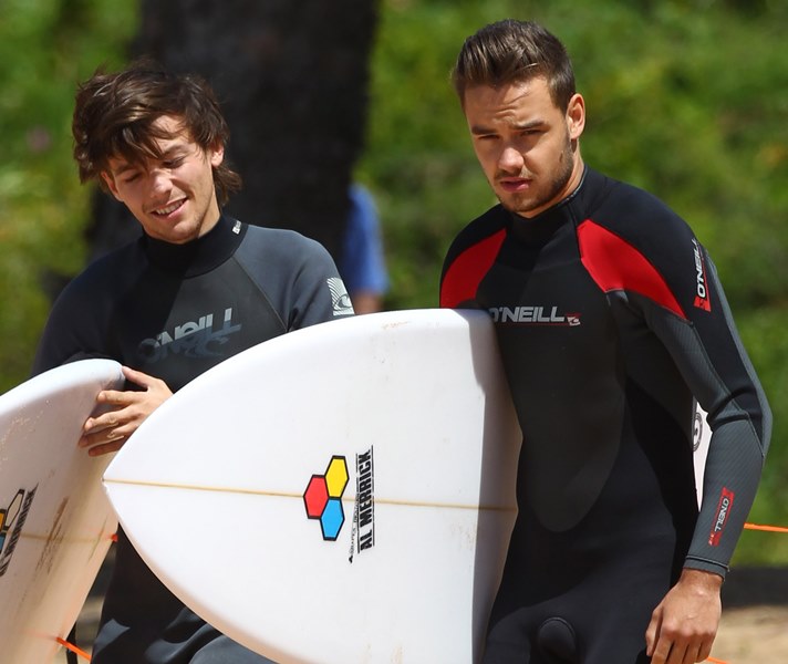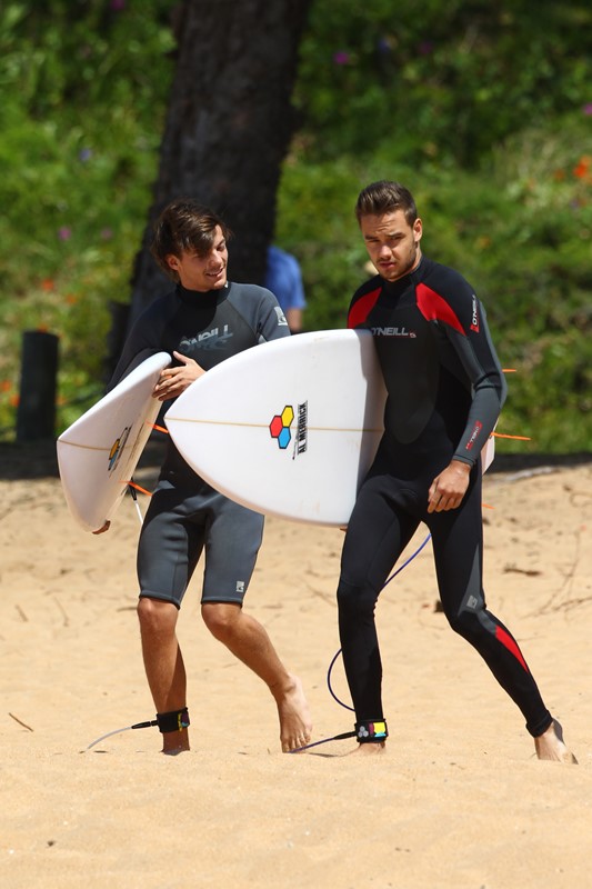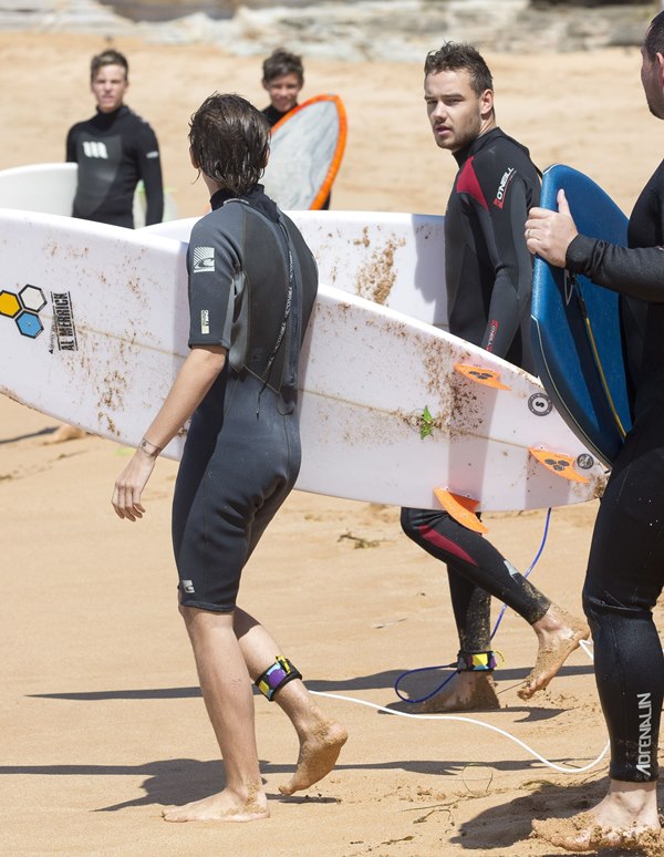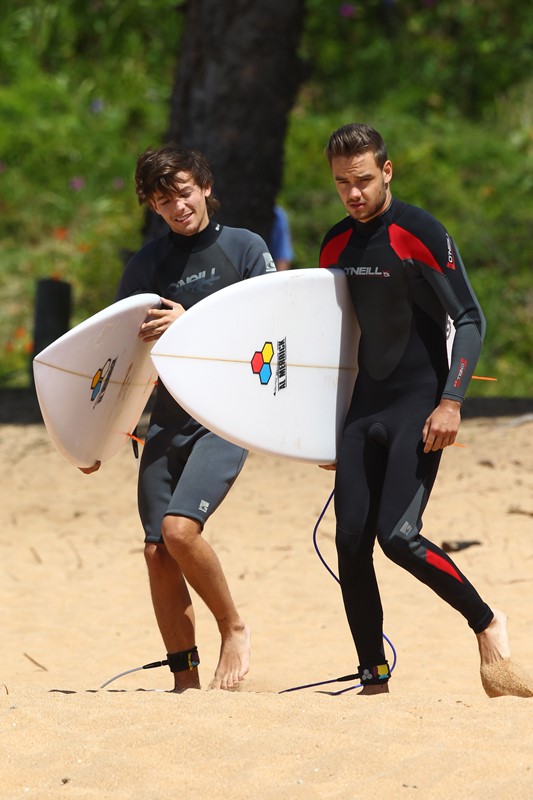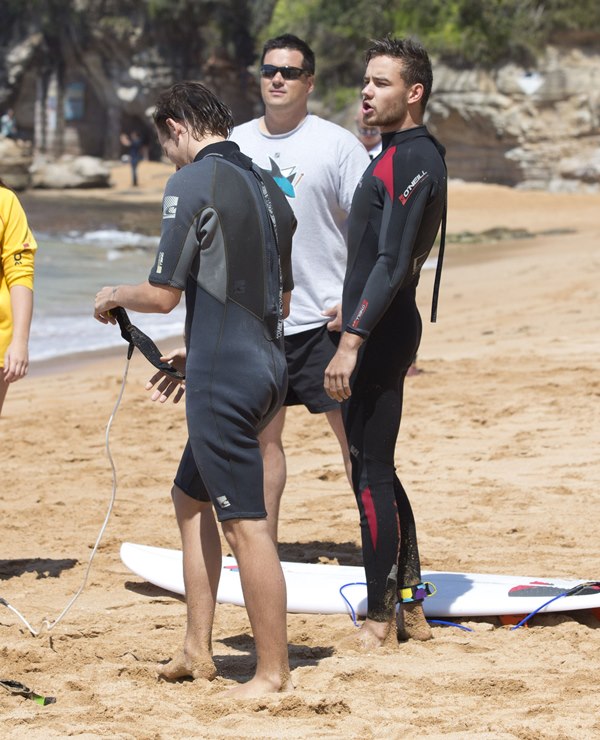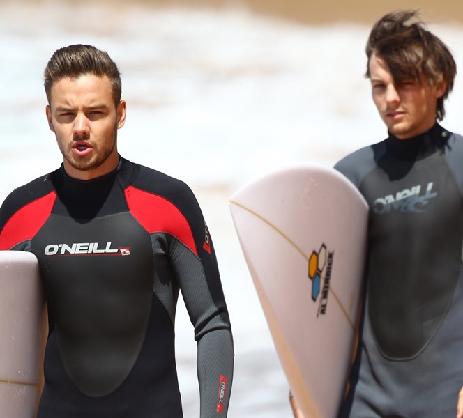 Have received many emails asking me to post pictures of One Direction’s Liam Payne surfing in Sydney As you know, as far as 1D is concerned, I’m all about Harry Styles. But there are 5 of them, yes. And some of you have different preferences. So here are Liam and Louis on the water. I agree. I don’t mind seeing Liam with his wetsuit half off.