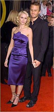 At a screening for Omen, co-starring the increasingly androgynous Julia Stiles. Never found him attractive before but wow. On this night, Liev Schreiber is a sexy beast. And Naomi Watts is a sexy bitch. And they look wonderful together. Some people say she"ll make it to the altar before Nicole. I"d say this is a very good prediction. Nice to see her with someone equally matched on the red carpet. It"s a huge improvement over the Heath days. Talk about a mismatch. Just looking back at them makes me uncomfortable. Here - see for yourself. Awkward, non?