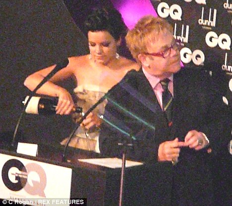 At the GQ Men of the Year Awards last night in London, Lily Allen was overdressed and overdrunk, arriving in an inexplicably over the top massive gown and getting progressively more licked as the evening wore on, so drunk she dared to disrespect Elton John on stage.