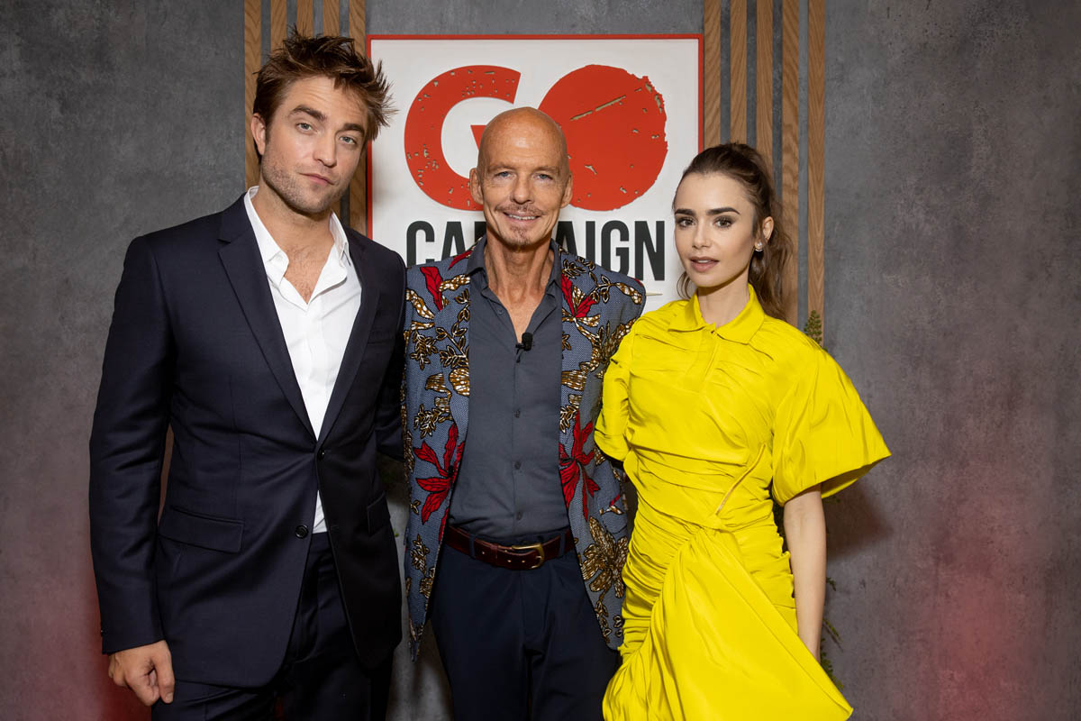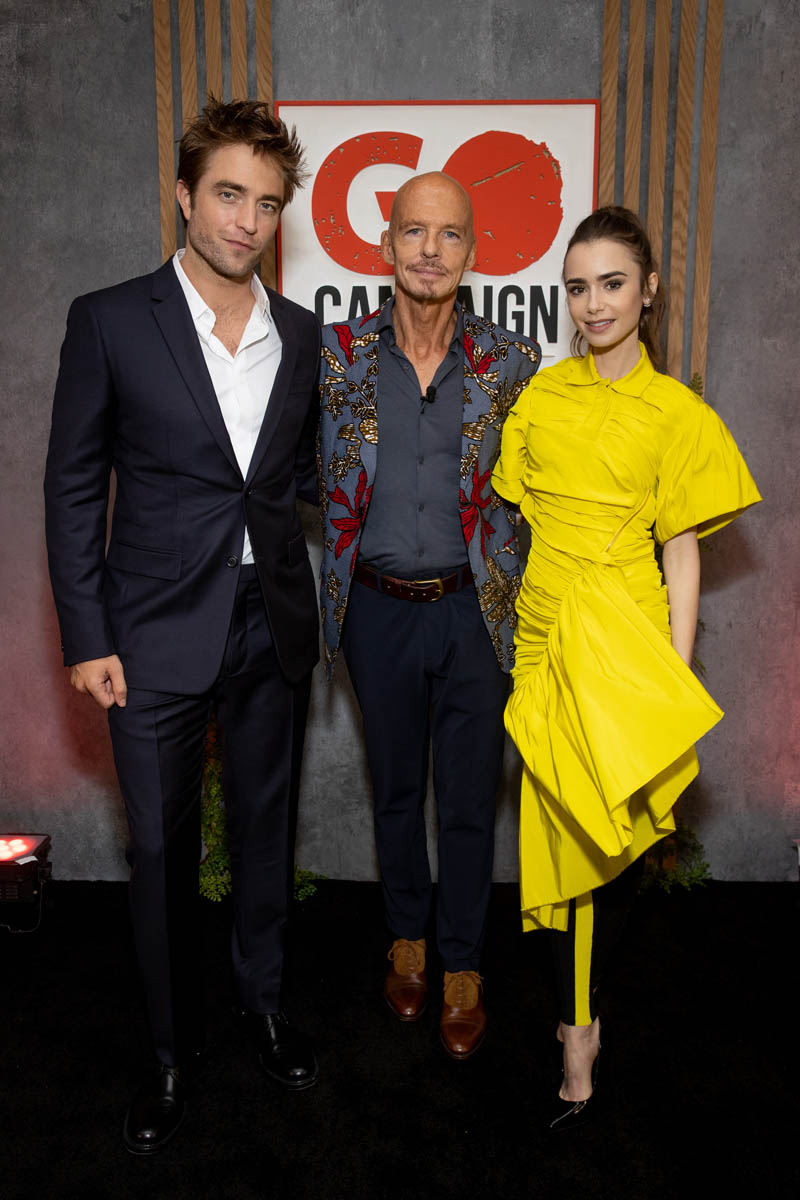 While Catwoman Zoë Kravitz was in New York this weekend, The Batman Robert Pattinson co-hosted the virtual GO Gala in LA. He’s been an ambassador for GO Campaign since 2015 and shows up at this event almost every year. This year he co-hosted with Lily Collins in an amazing yellow shirt dress over black tuxedo pants with a yellow stripe. I love this outfit SO much.