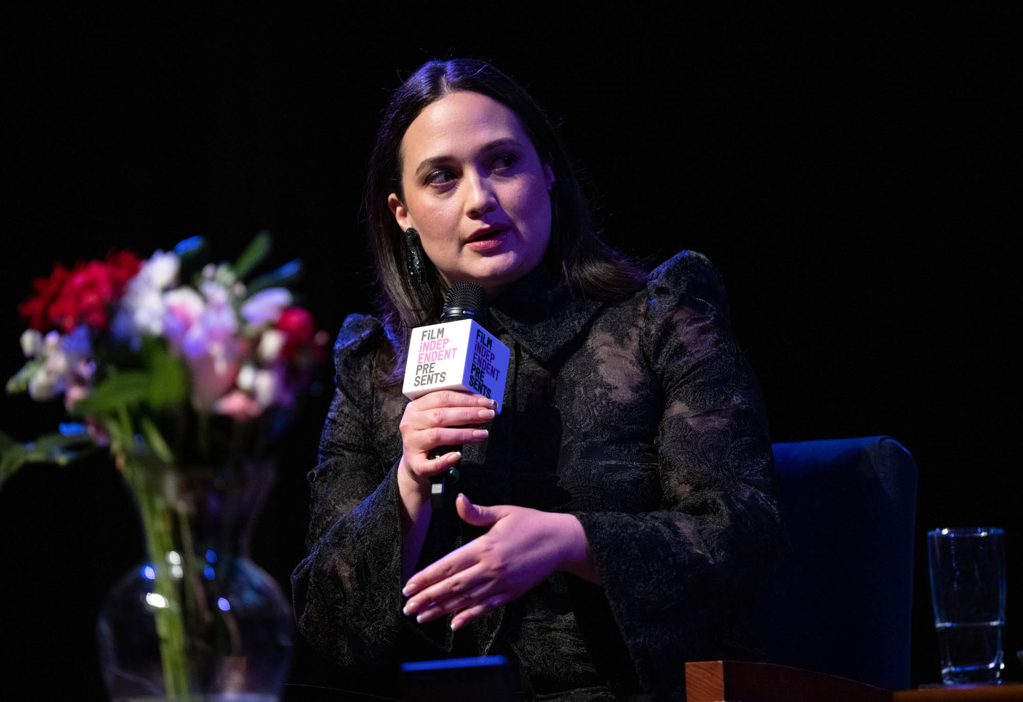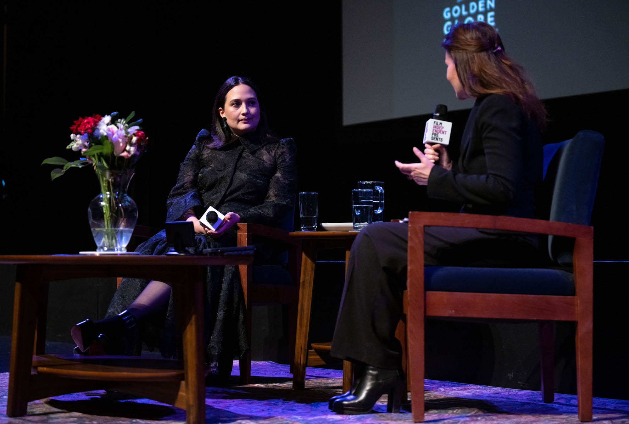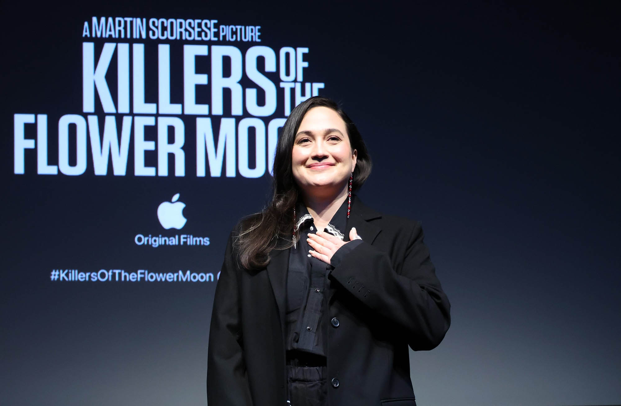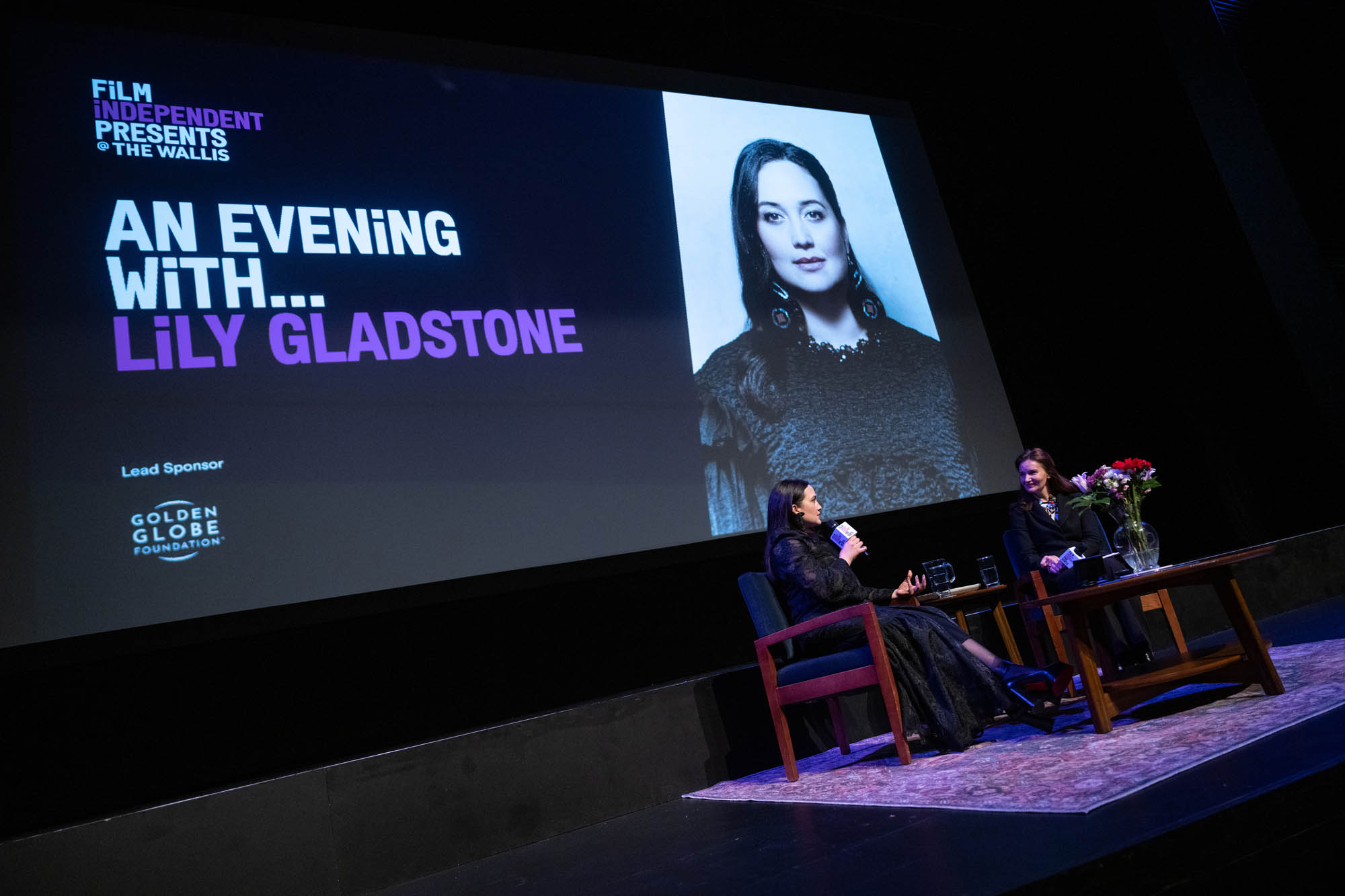 Lily Gladstone, who was not nominated for a BAFTA, was back in LA campaigning at two events yesterday while the BAFTAs were happening – there was a screening for the film at the London West Hollywood and then at the Wallis Annenberg Center for the Performing Arts for “An Evening With…” event hosted by Film Independent.