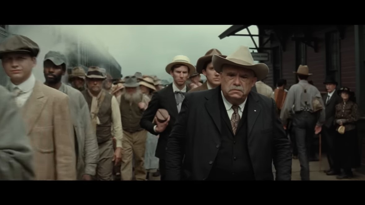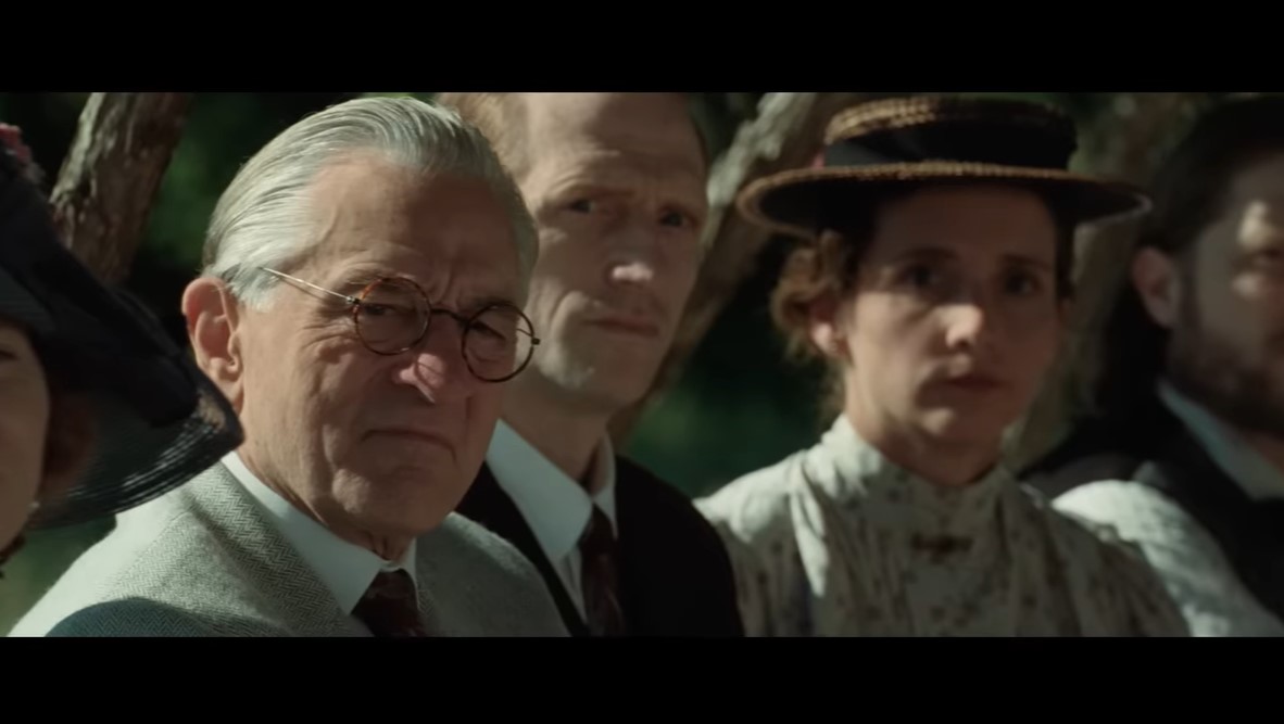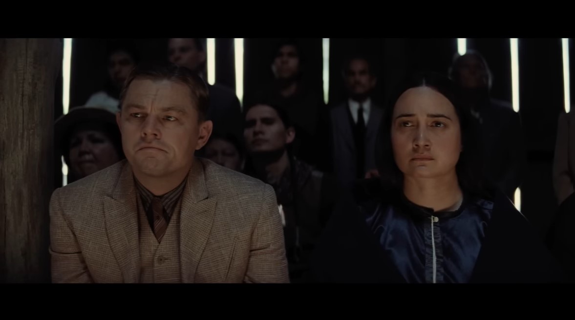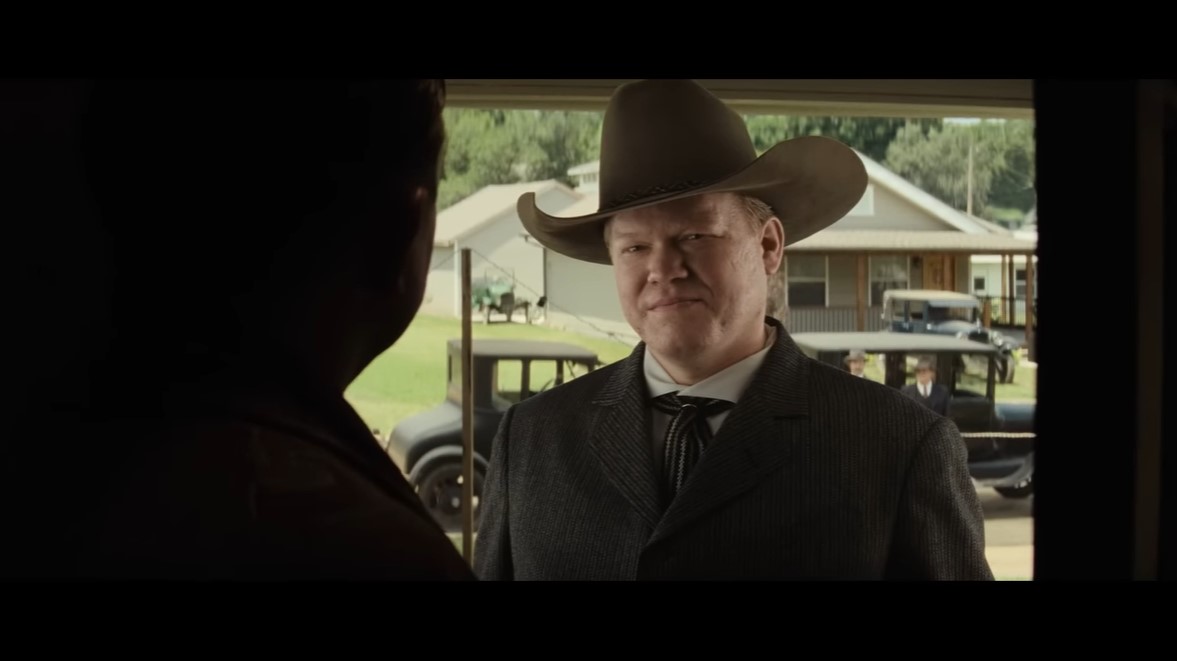 The trailer doesn’t reveal the more granular relationships—Ernest is William Hale’s nephew—but you do get a sense of Ernest’s conflicted loyalties as he marries and has kids with Mollie, as well as getting a sense of Mollie’s iron-willed appeal. Also, the music in this trailer is AMAZING. I tried to find an ID and couldn’t, but I will keep looking (the first trailer’s music is by Christopher Lane, a composer and sound designer).