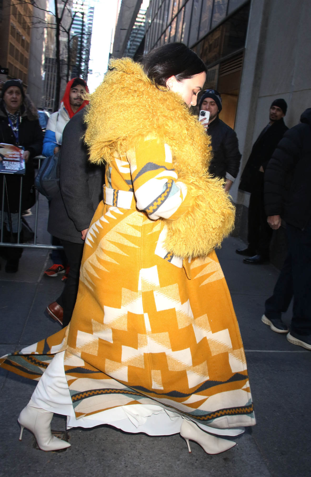 Lily Gladstone was honored as the National Board of Review’s Best Actress for Killers of the Flower Moon. She had a busy day yesterday, appearing on The Today Show in the morning, and at the NBR Gala that night. Let’s talk about her looks, starting with the AMAZING yellow coat she wore into the studio for The Today Show.