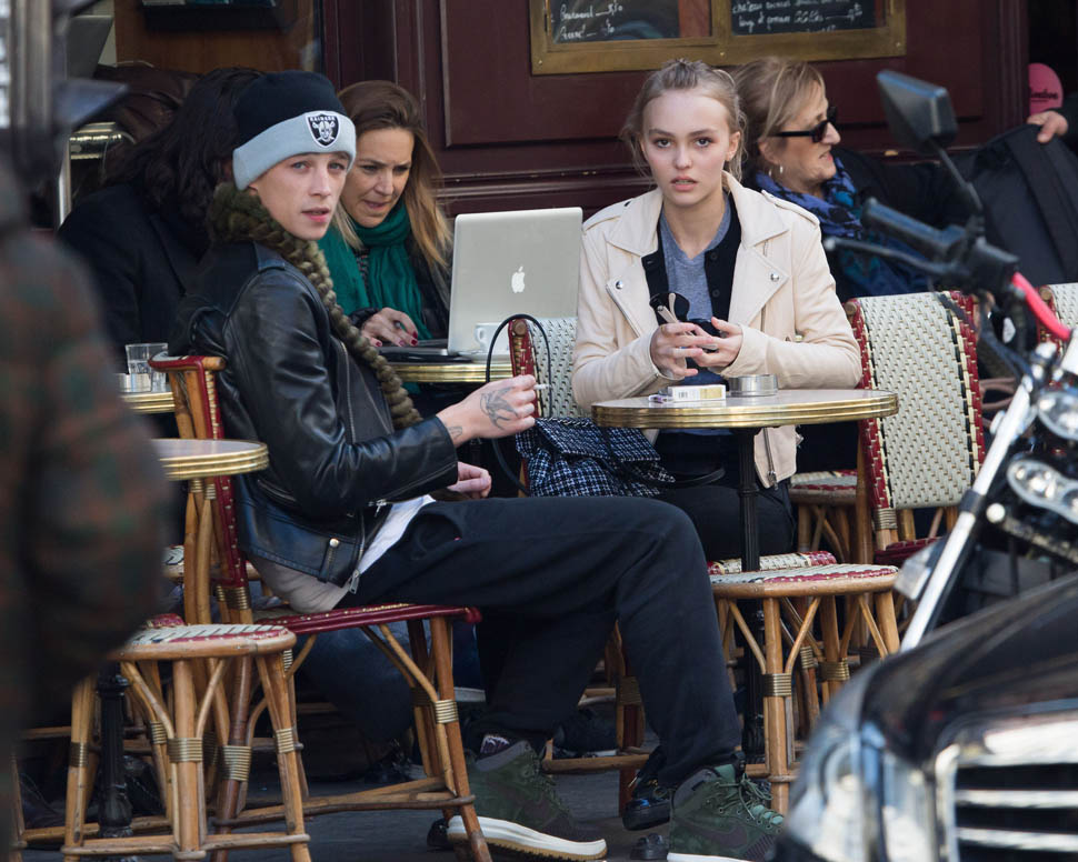 Lily-Rose Depp is currently 16 years old. She turns 17 in a couple of months. The other day she flew with her mother, brother, and rumoured boyfriend to Paris. Yesterday she was photographed with him over lunch with her aunt. He’s a model. His name is Ashley “Ash” Stymest. He’s 24 years old.