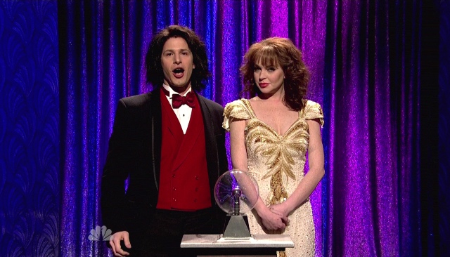 Andy Samberg couldn’t find a way to put her in his video. Seth Meyers didn’t want her anywhere near the news desk. And, frankly, she wasn’t really the lead in any of her sketches either. A strong host drives the material. See Daniel Radcliffe who indisputably took the lead on almost all of his sketches. Lindsay Lohan was relegated to the background, always a supporting player...who could barely get her lines out.