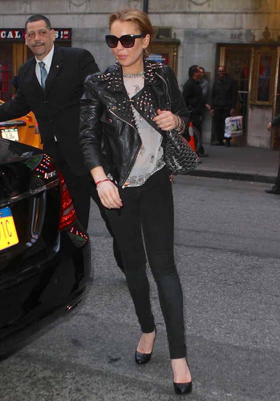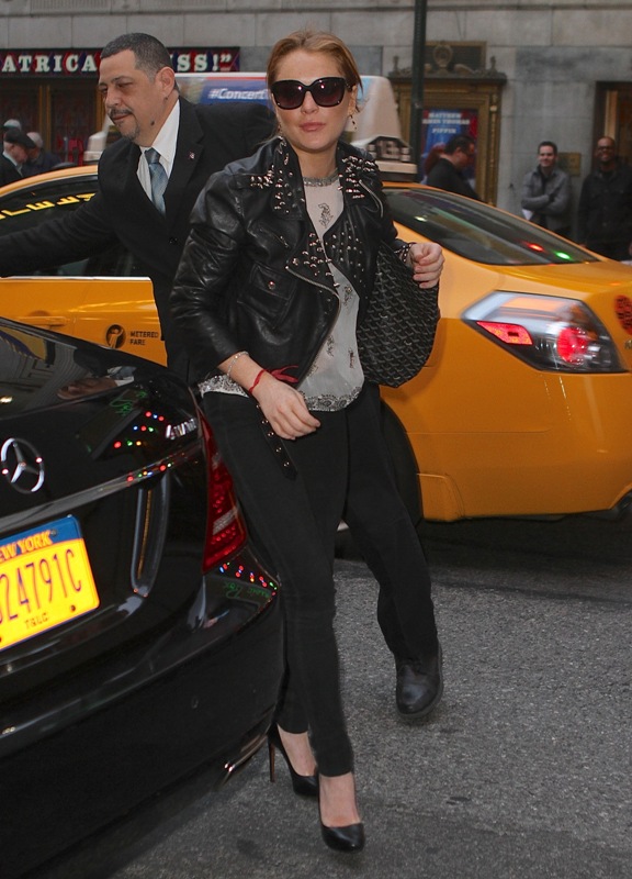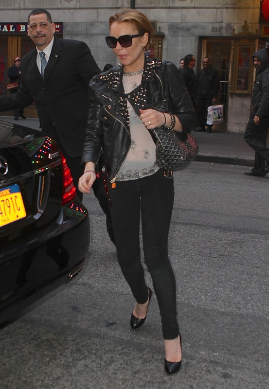 Here they are, Lindsay and Mohammed, last night in New York arriving 45 minutes late to see Orphans, the Broadway play that was supposed to star Shia LaBeouf before he and Alec Baldwin got into a dick fight. According to E! News she and Avi Snow, her musician boyfriend for about 5 minutes, broke up a couple of weeks ago...