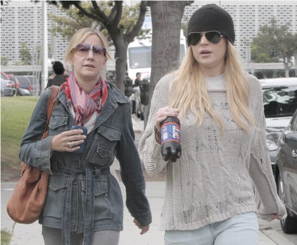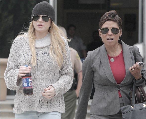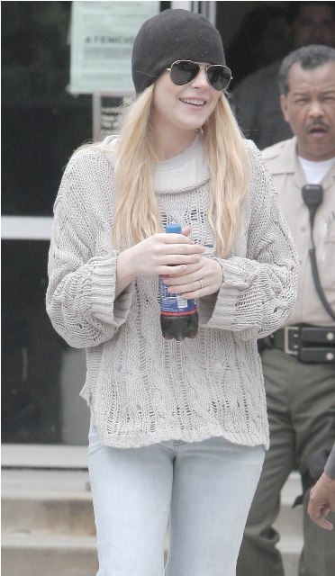 Lilo met with her probation officer yesterday and was given instructions about her random drug testing. Then she went shopping with a really bloated face. Some of you have suggested that she’s looking more and more like Rachel Uchitel. I love this.