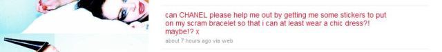 can CHANEL please help me out by getting me some stickers to put on my scram bracelet so that i can at least wear a chic dress?! maybe!? x
