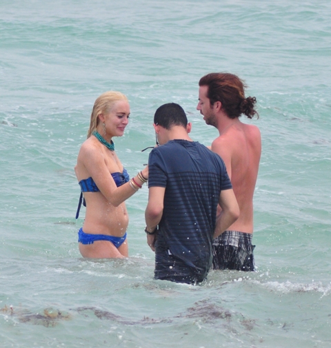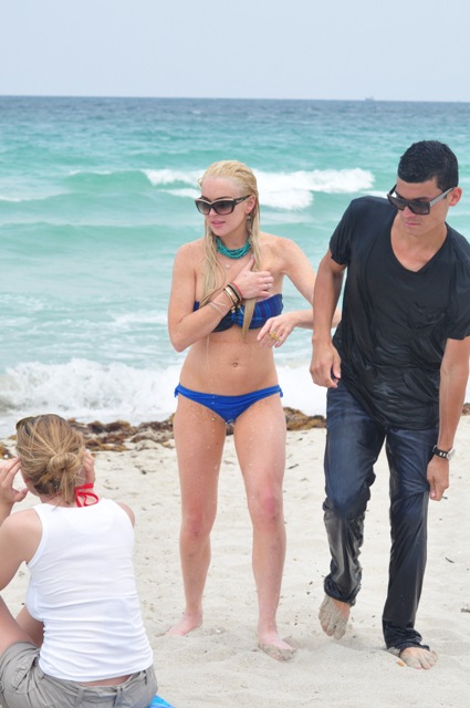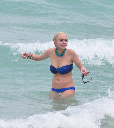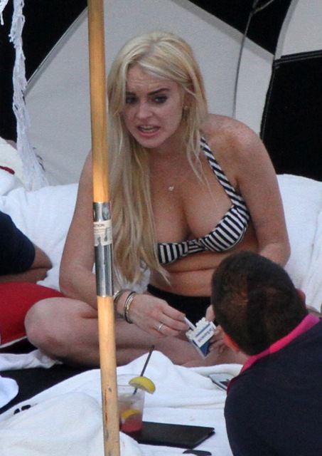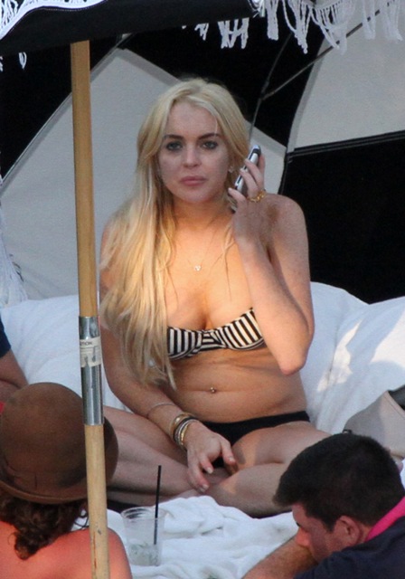 Attached – Lohan in Miami a few days ago in her bikini which just happened to keep falling off.
