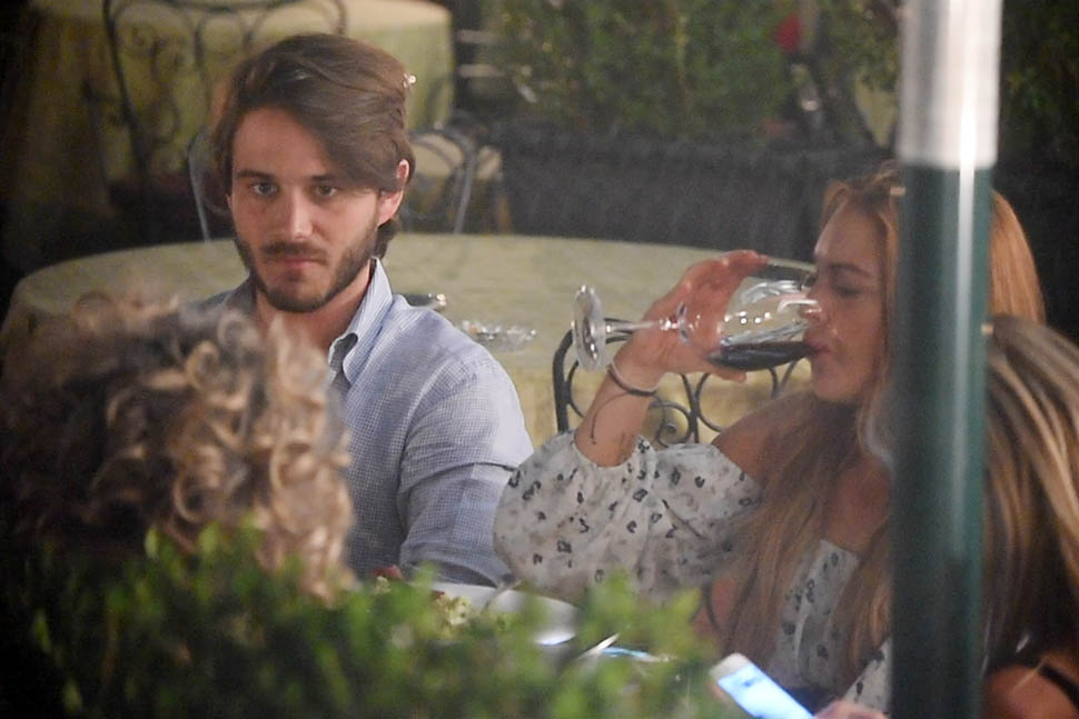 After “working so hard” to complete her community service Lindsay Lohan spent the weekend in Venice, Italy with Mathia Milani, supposedly her new boyfriend. Since there was something to celebrate, well, Lindsay never really needs an excuse, so they celebrated with a toast. And since she’s officially off probation, for the first time in 7 years, well… you can see for yourself what’s in that wine glass.