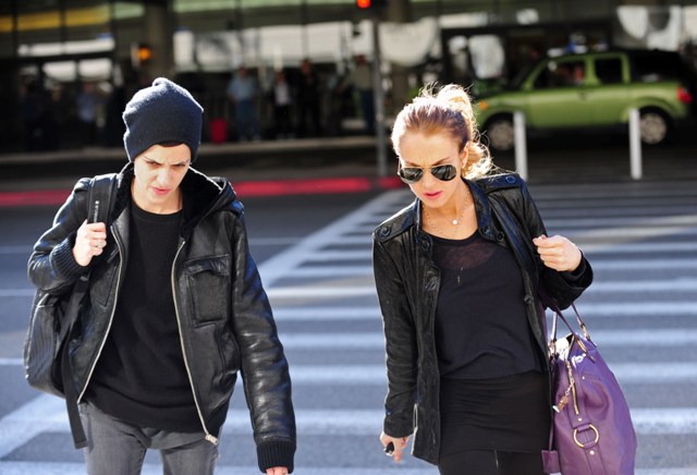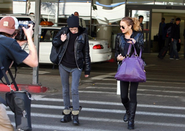 Surprisingly enough, Lindsay and Sam did not stay for the game. They dashed out right away, arriving back at LAX on Sunday and unlike the last time they came home from Florida (New Year’s Eve), there was no screaming match meltdown at the airport. In fact, Lilo seemed in great spirits and Samantha stoic as usual. Word is she’s trying to keep her stable as anything these days can the Lohan off. And it’s not like there’s any family around to give a sh-t, you know?