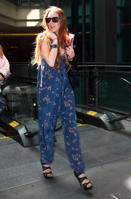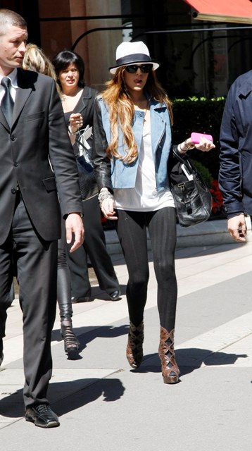 Apparently the clueless owner of the fashion house (he probably wears Ed Hardy) wants to bring her on as some kind of style consultant (???) much to the dismay of creative director Esteban Cortazar who, quite rightly, doesn’t want anything to do with her orange ass. Lilo may be a clothes horse, but that doesn’t make her an original. Am including photos from mid May of Lindsay on her way out of a business meeting wearing an outfit I’m sure you’ll love discussing.