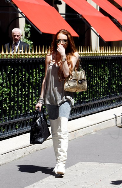 Lindsay Lohan turned up in Paris but headed out of Paris with a sh-tload of luggage en route, supposedly, to London to catch up with Samantha Ronson who played a gig last night at Mahiki.
