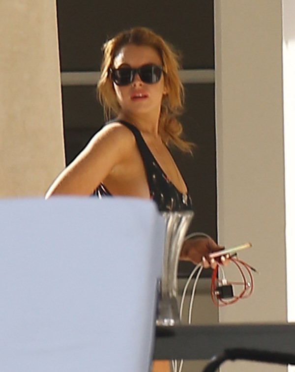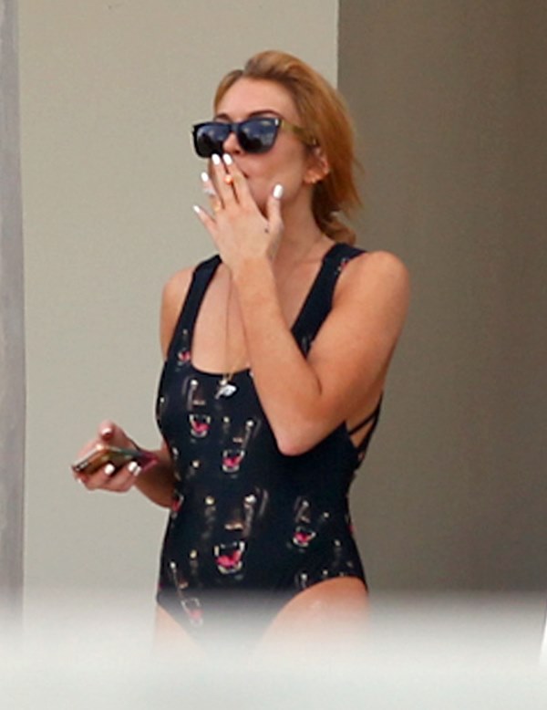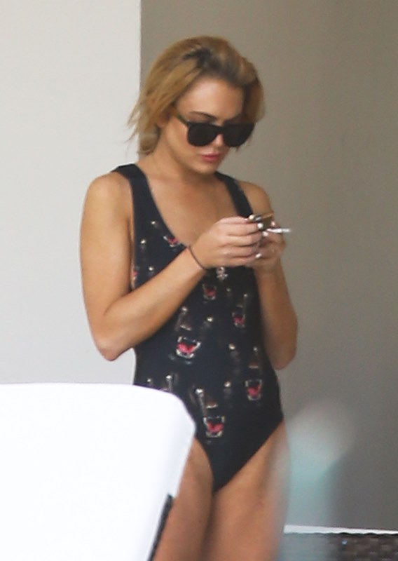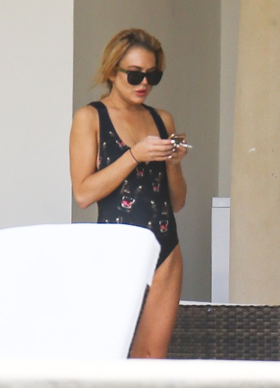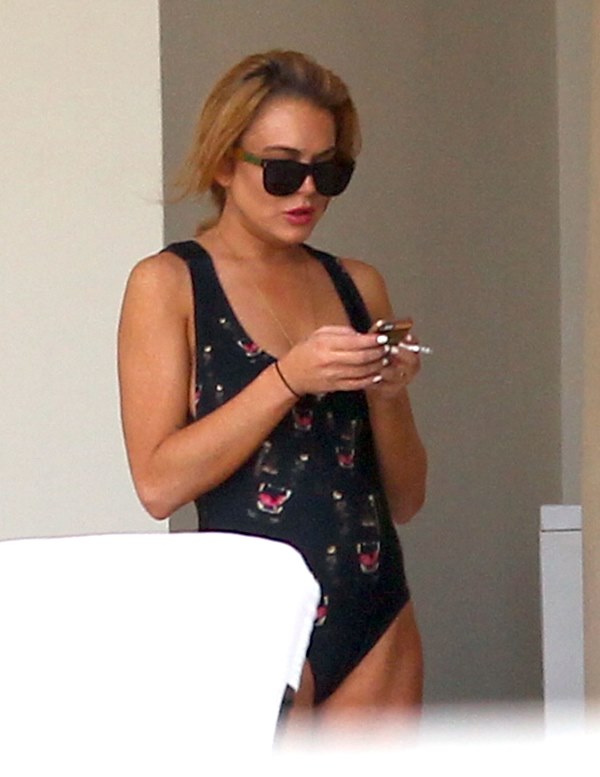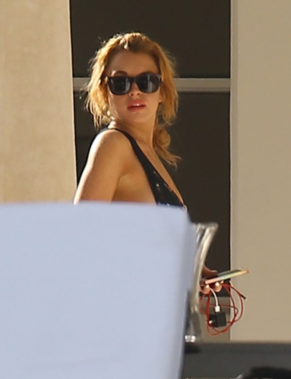 So here’s Lindsay Lohan in Miami hanging out by the pool with some friends. She needs some down time, you know? Oprah’s been working her hard. Call it “art therapy” then, because it’s Art Basel in Miami this week. And the art would be the only reason she’d be there, non?