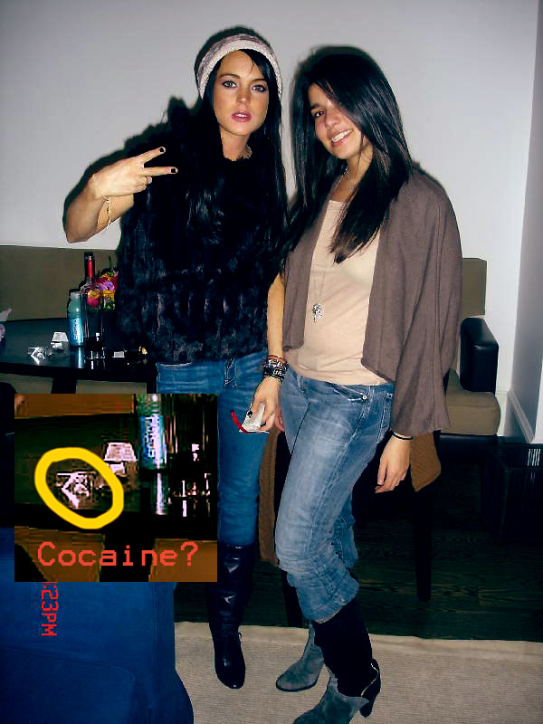New images showed up today on MySpace and PopSugar of party happy Lohan with what everyone thinks is a line of coke on the table. Other photos show a large bong as a centerpiece and Lindsay in various poses all while giving the finger. Now there’s a shocker. Lindsay Lohan doing drugs? You don’t f&cking say! Once again, let me take this back to her useless, selfish cow of a mother Dina Lohan, who is too busy rubbing herself all over the mounds of money her daughter makes to bother giving a sh*t about the decadent lifestyle her kid has been living for the last 3 years. The good news is she’s only 19, plenty of time to grow up. The bad news is that at this rate, she’s going to f&ck and snort her way to career suicide if someone doesn’t take a paddle and smack some sense into her weaved up little head. Or perhaps she can be convinced to divorce both her parents, Barrymore herself out of trouble, and live to write a book about it. Fingers crossed, gossips. Fingers crossed.