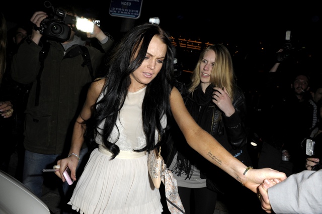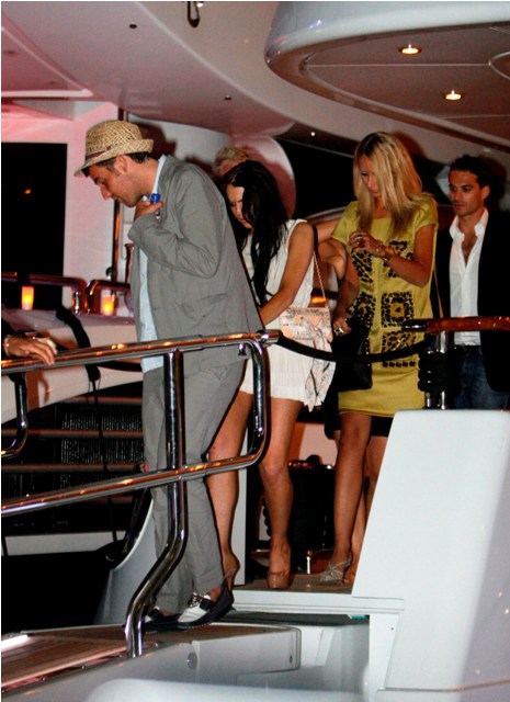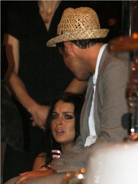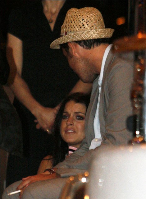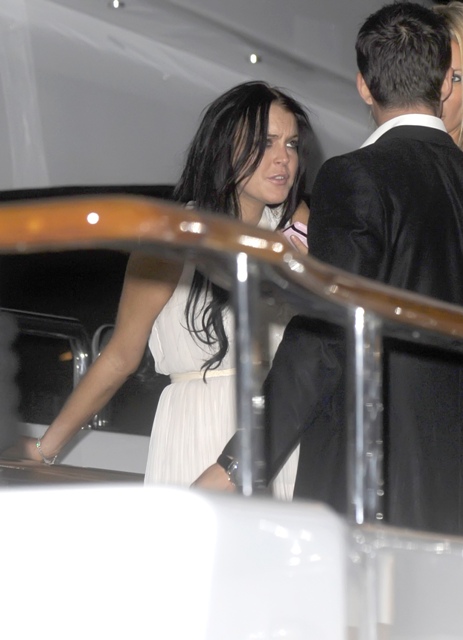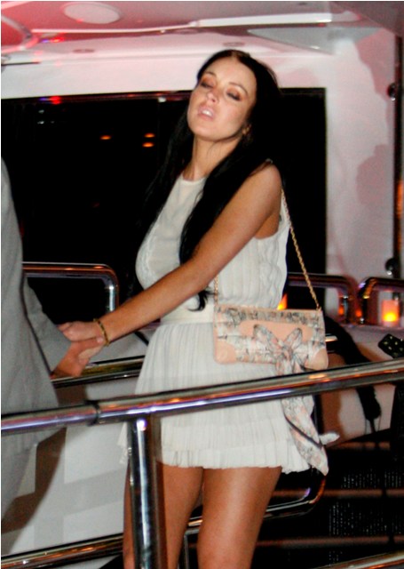 So this is Lindsay Lohan, partying on a yacht almost immediately upon arrival, cigarette after cigarette, skeezing it hard among the eurodouches and possible johns. Lessons from Dina. F-ck the court, never mind that she has to present herself on Thursday in front of the judge for a DUI progress report, French Riviera vodka shots are much more important.