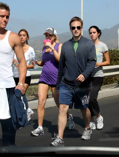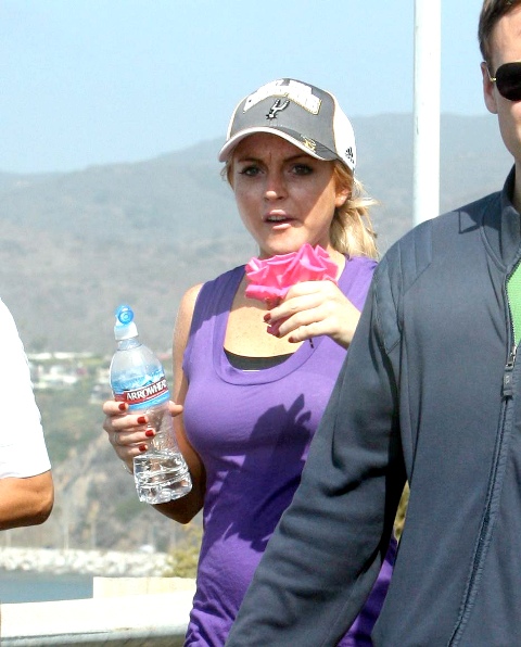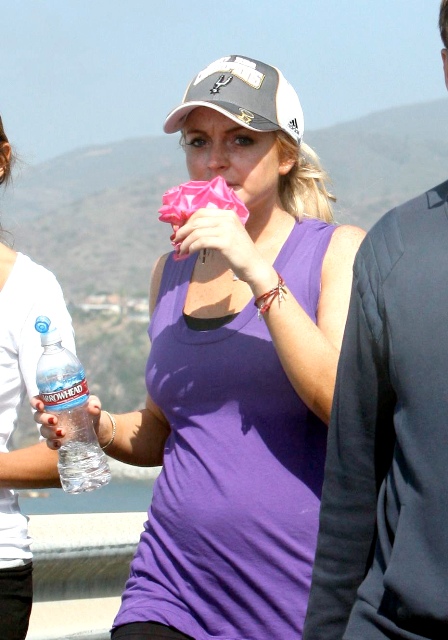 So here’s Lindsay going for a run in the hills yesterday and Bumpwatch begins anew. The always reliable Star Magazine will probably jump all over this sh-t: Lindsay pregnant and in love with bodyguard/trainer/addictions counsellor/janitor at Promises/Brad Pitt!!!