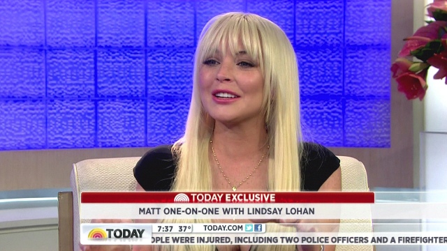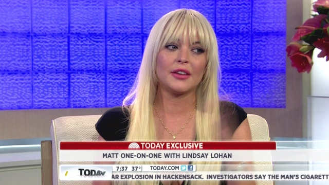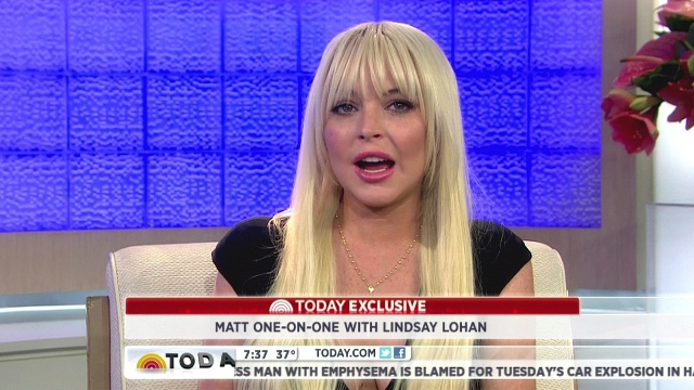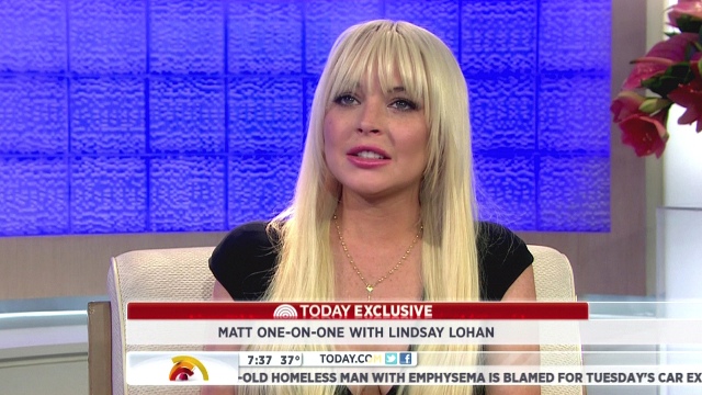 Lindsay Lohan’s interview with Matt Lauer on The Today Show aired this morning. She says she’s changed and learned and is ready to move on and whatever, the same sh-t she’s been saying for years. And then, of course, when asked what she’ll be doing in 5 years, what she’ll be like at 30, the FIRST THING OUT OF HER MOUTH, right off the top, is: