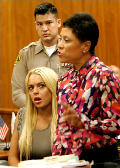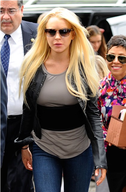 She’s been cuffed, she has surrendered, and she’s on her way to jail, but not before one last photo opportunity and fashion show – this is Lindsay Lohan reporting to court this morning before being taken away to prison for the next 3 weeks which is how long they say she’ll have to serve as part of her 90 sentence. THEN it’s rehab.