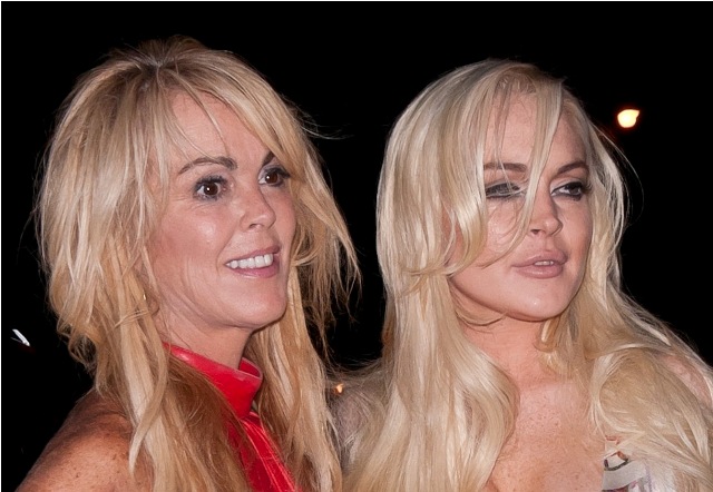 Attached - Lohan and Lohan posing for paparazzi, without throwing drinks, somewhere in NYC.