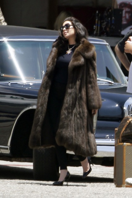 Here's Lohan on set yesterday in costume. As I keep saying, this entire movie looks like a photo shoot. That's all she seems to be focused on anyway.