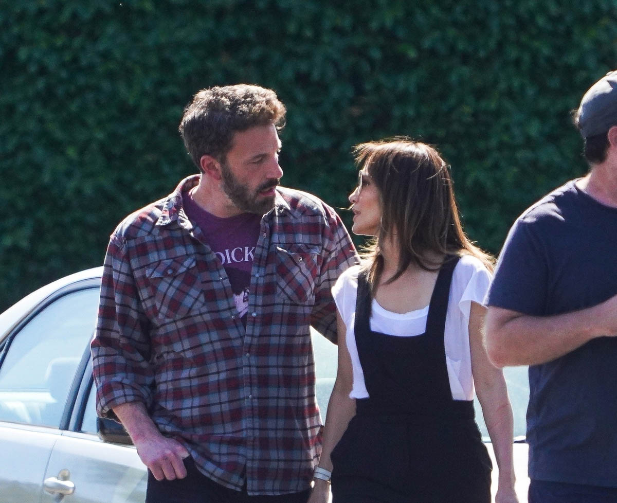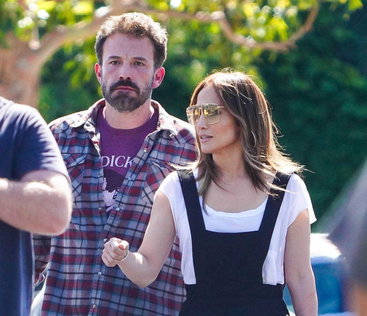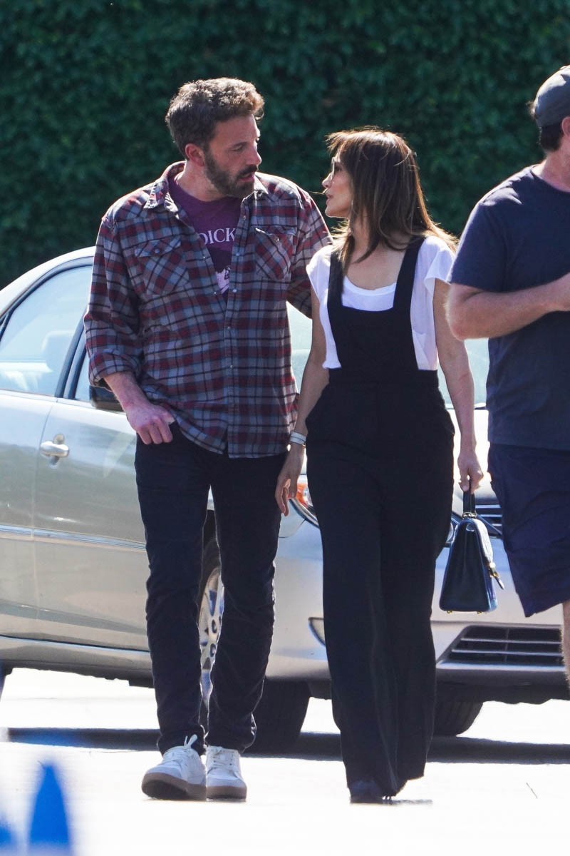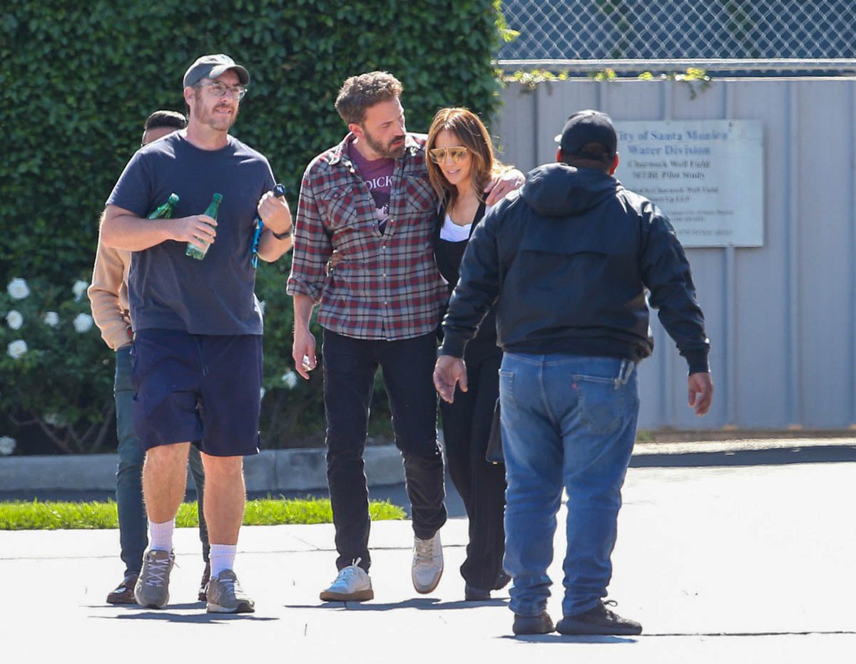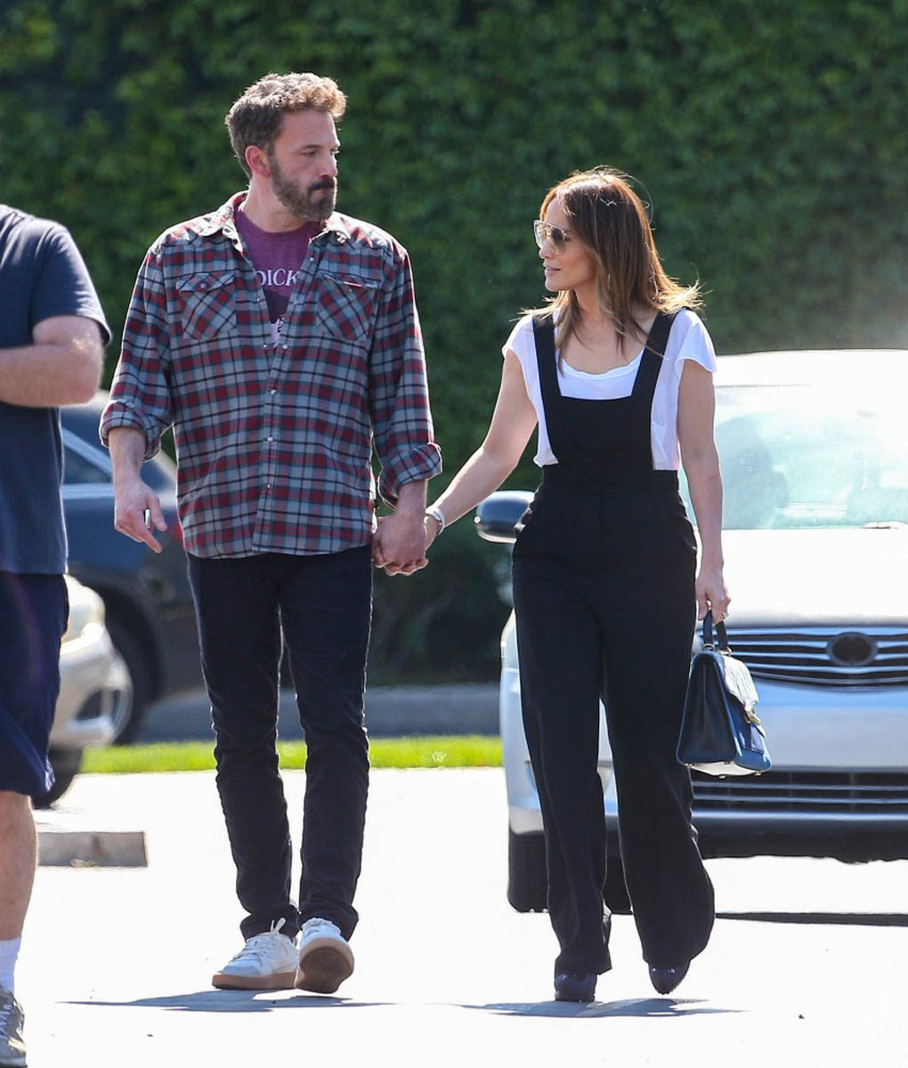 Here they are yesterday on the school run, and there’s a cute moment (which I’m not including a photo of, I’ll just describe it) from when they meet up with Emme, where Emme’s face appears to light up when she sees them. She’s looking at her mom and Ben with a big smile, and while of course, Photo Assumption is never a reliable indicator of how things are and how they’re working, at least from this angle, Bennifer aren’t the only two who are happy right now.