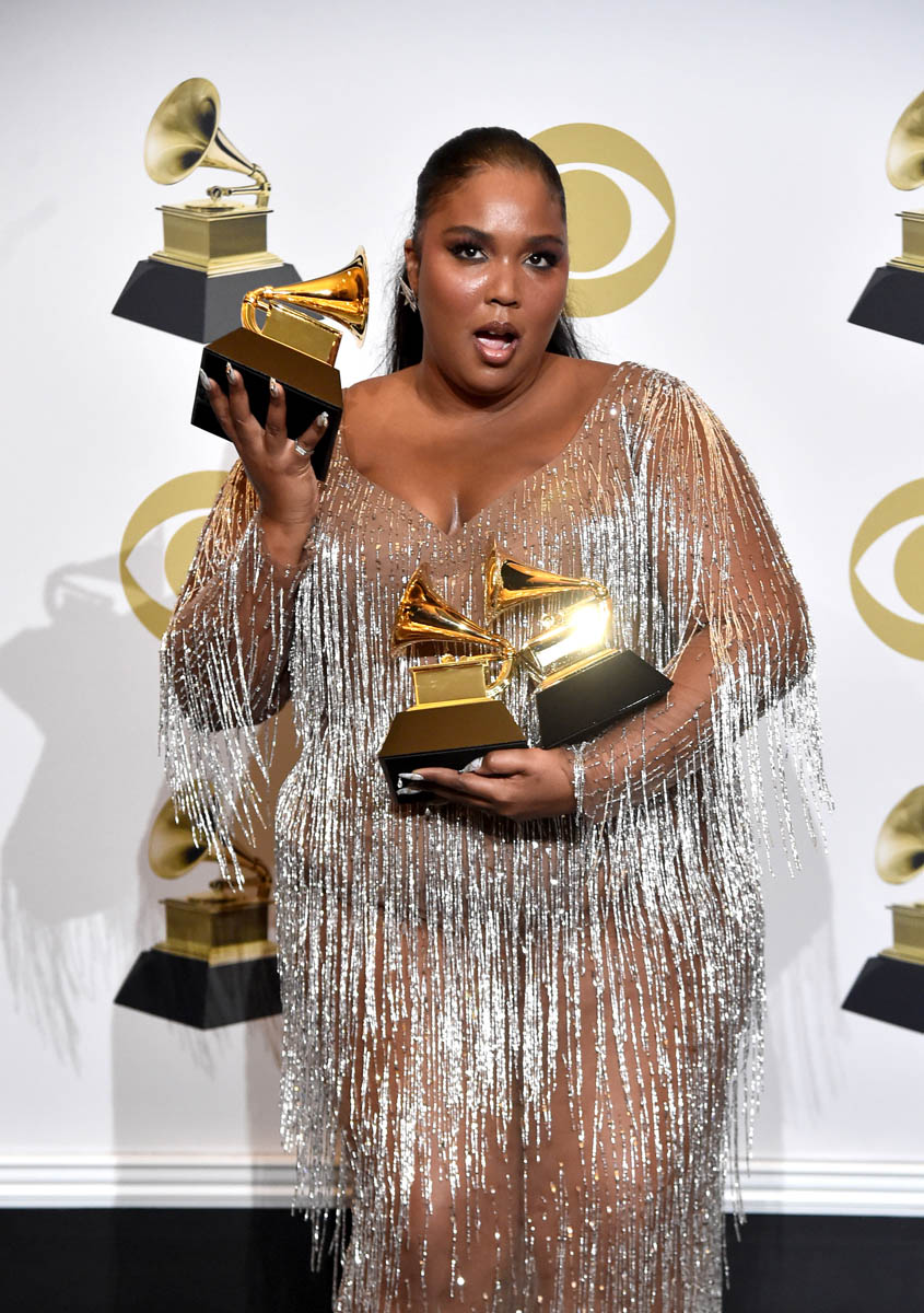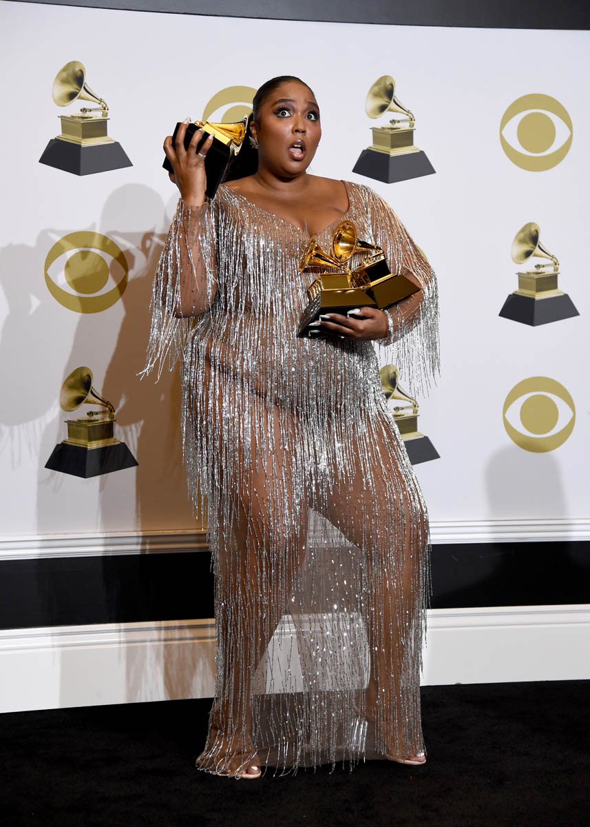 After that, it was the silver fringe – sheer below the waist, the loudest and most in-your-face of all three outifts, but without trading away the quality. This is intentionally almost tacky but held back by the undeniable craft of the piece so that you have no doubt it’s expensive, it’s art. I love that this year, of all the things she’s achieved, Lizzo has also become a fashion star.