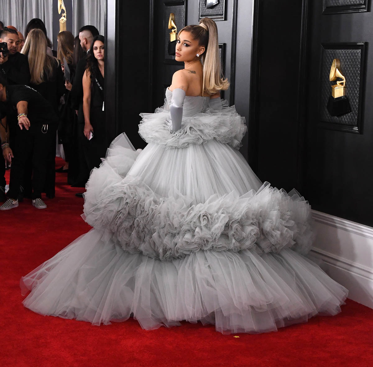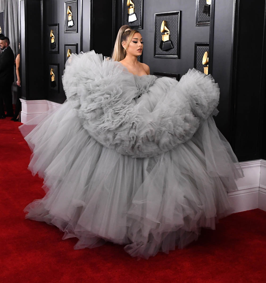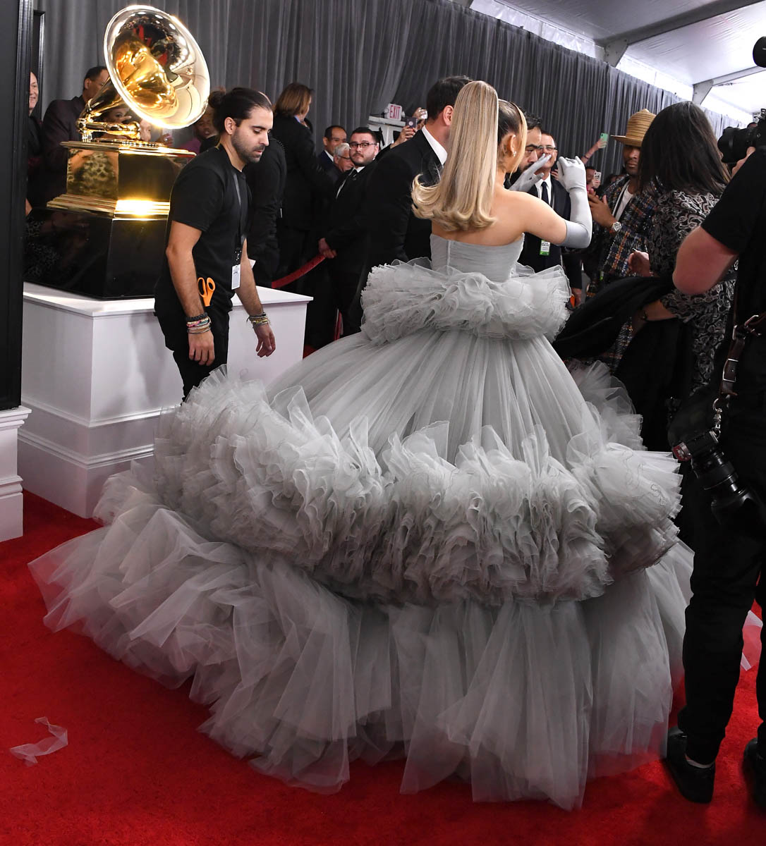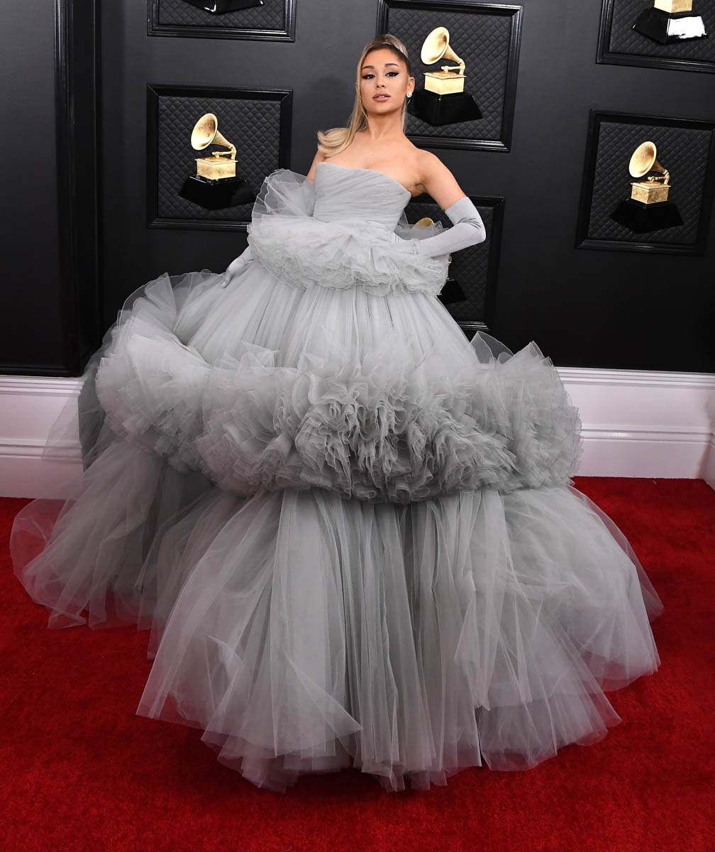 Yes, this is a tulle explosion. Yes, it’s a LOT of dress on a small person. But I don’t mind it in this case because of the occasion – not only the Grammys but the end of an era for her, as she’s announced on Twitter. When you’re marking that kind of a conclusion, of course, as they say, go out with a bang.