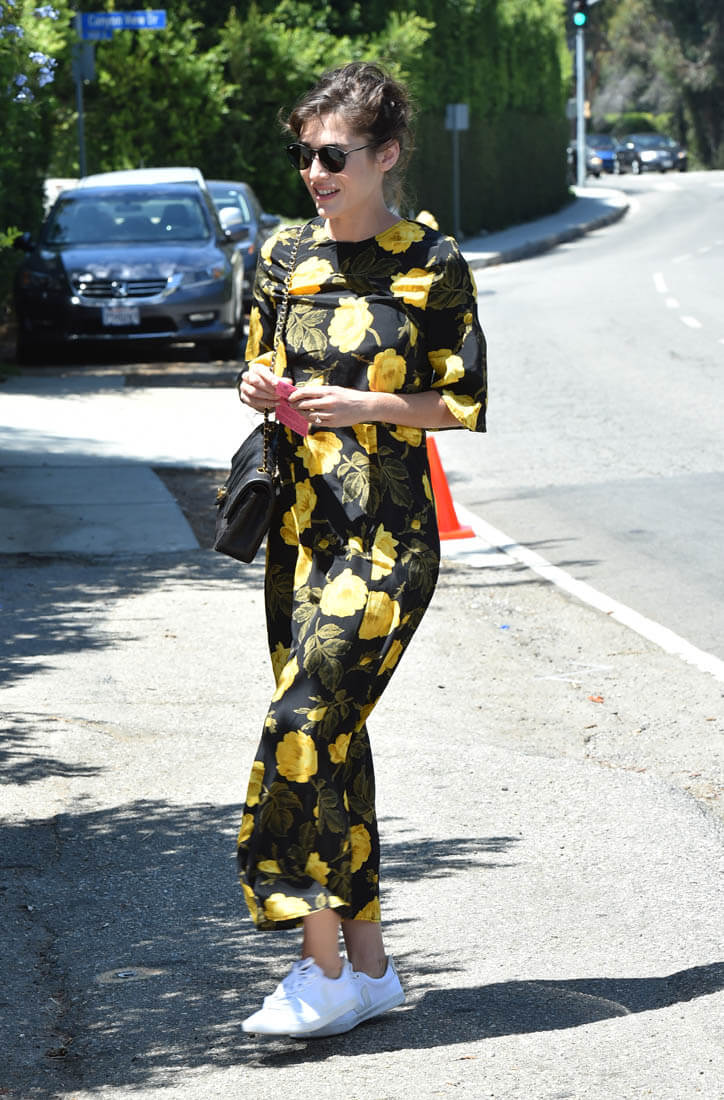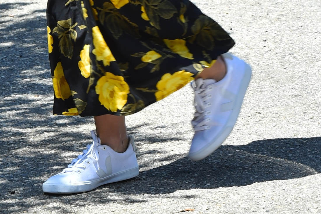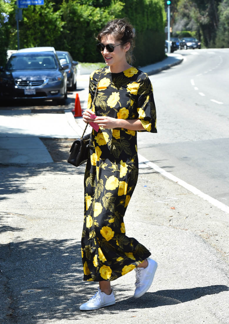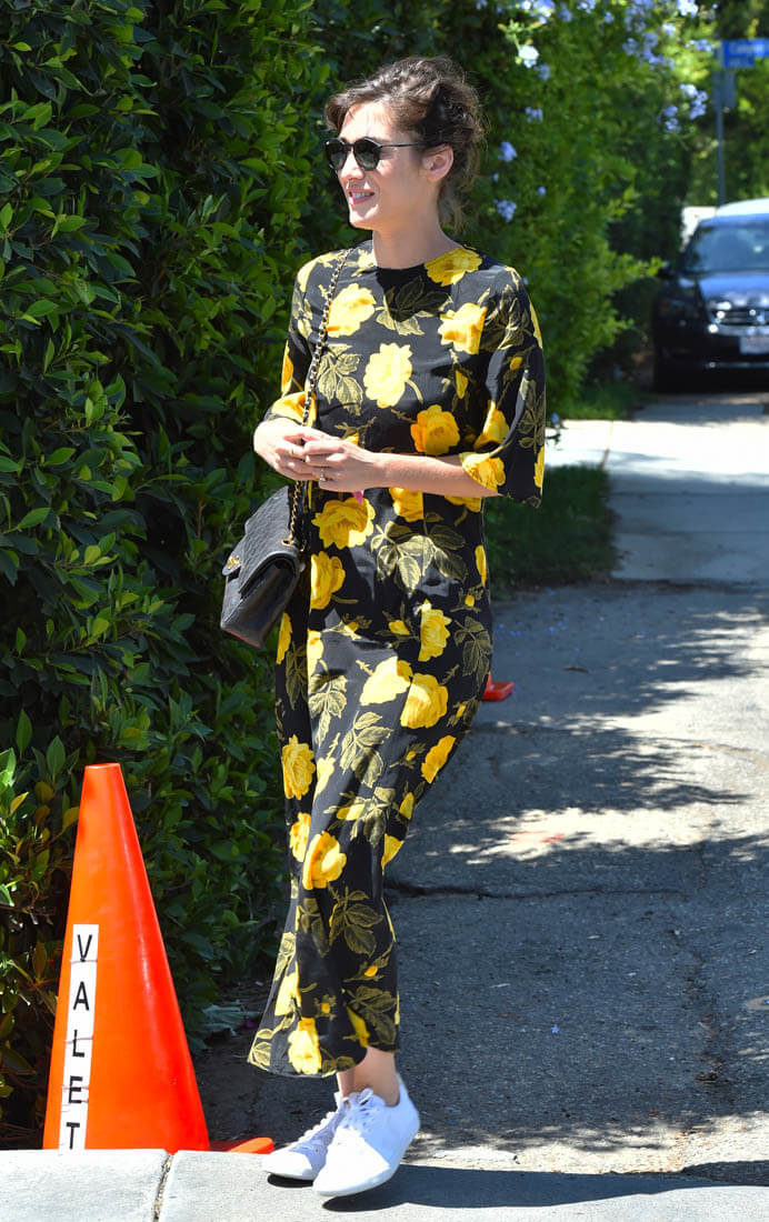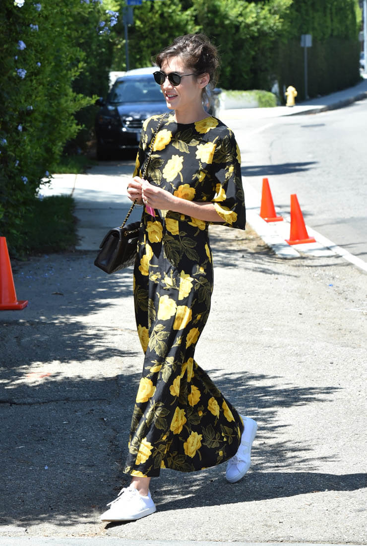 Black and yellow floral pattern with crisp white kicks. You in? I’m in. If you spend so much money for a dress that you originally intend for nighttime but a pair of sneakers can make it work for daytime, it’s an automatic value-add.