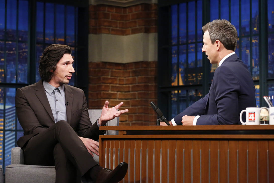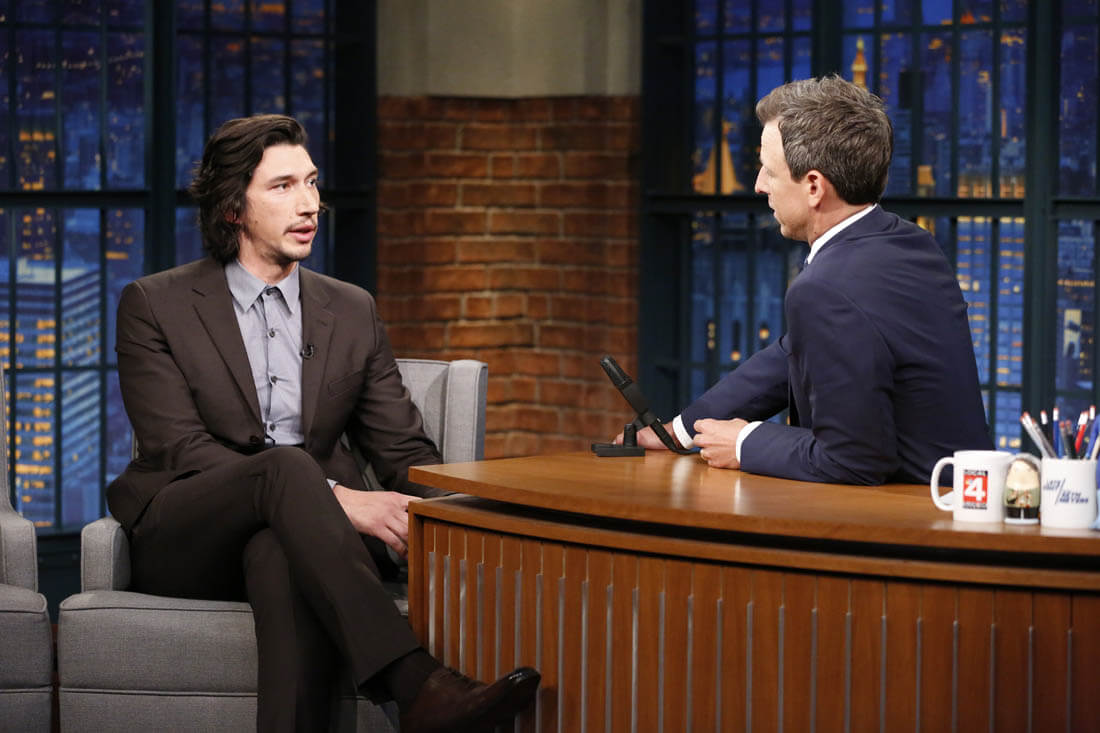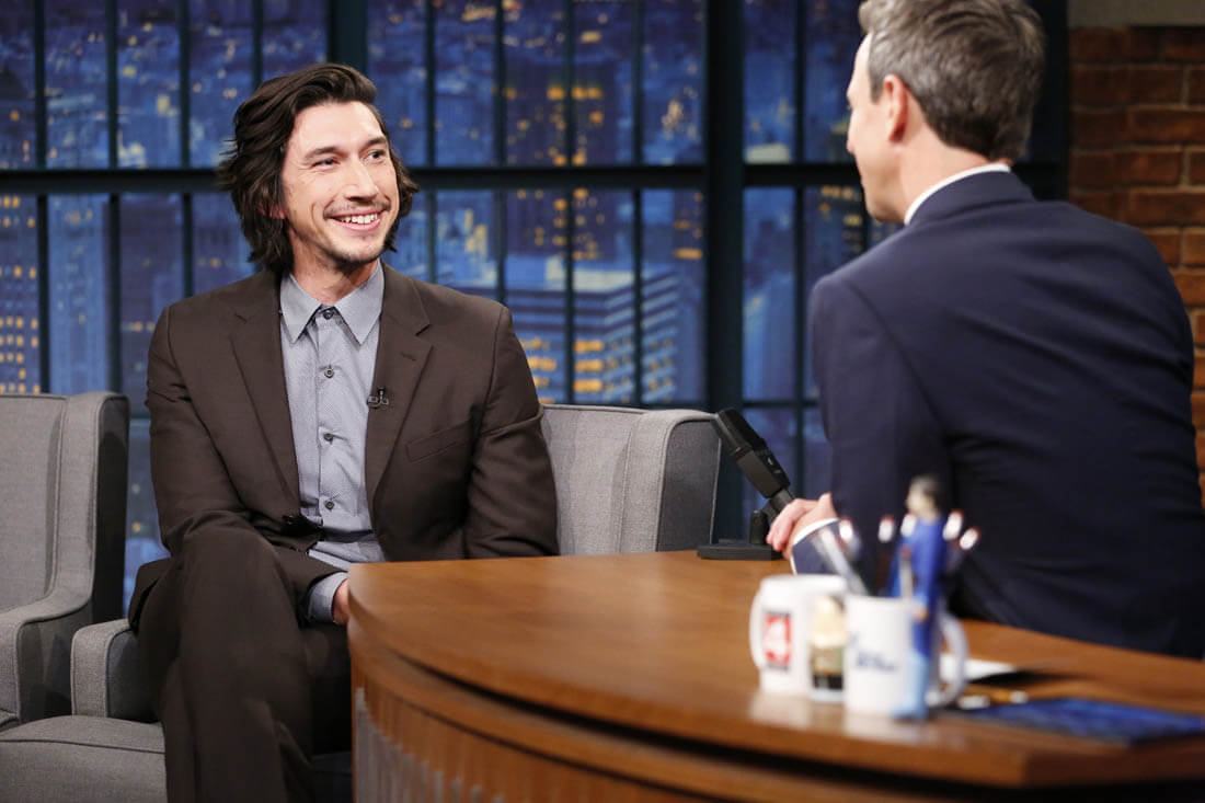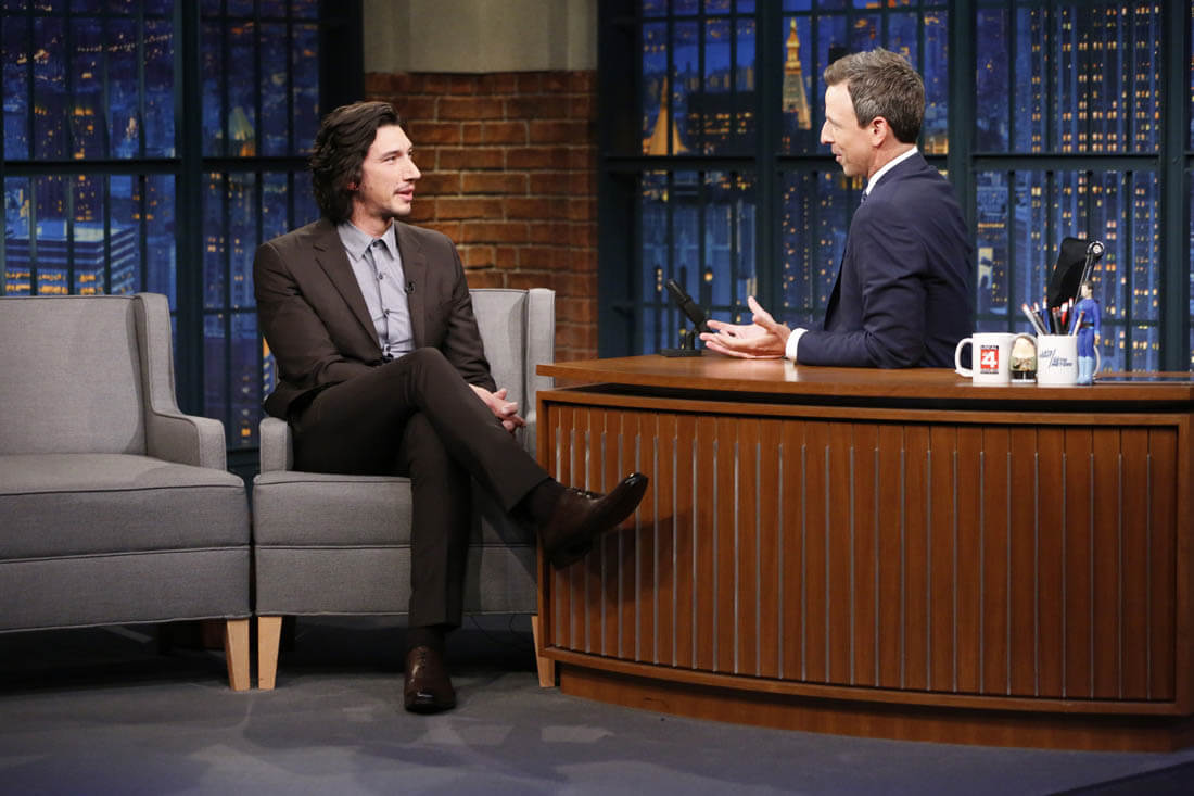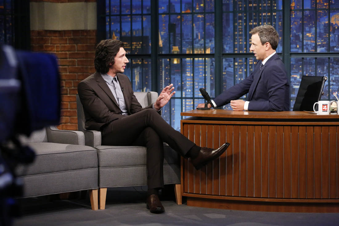 Here's Channing Tatum promoting Logan Lucky in the Netherlands on the weekend and Adam Driver on Late Night with Seth Meyers last week.