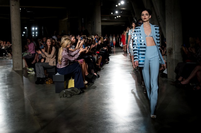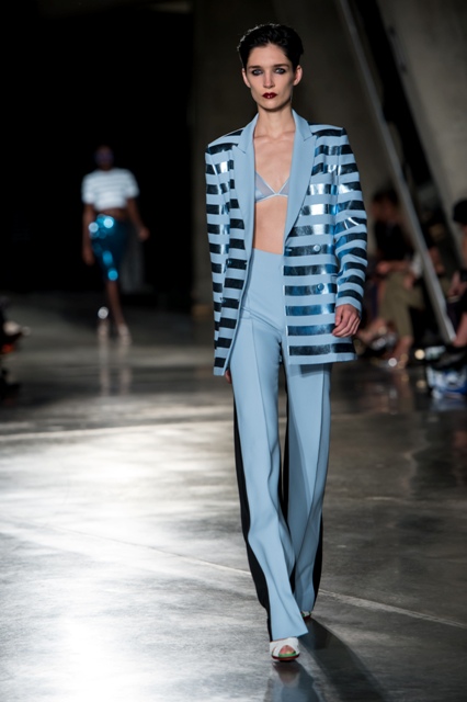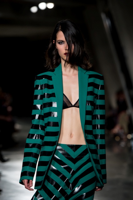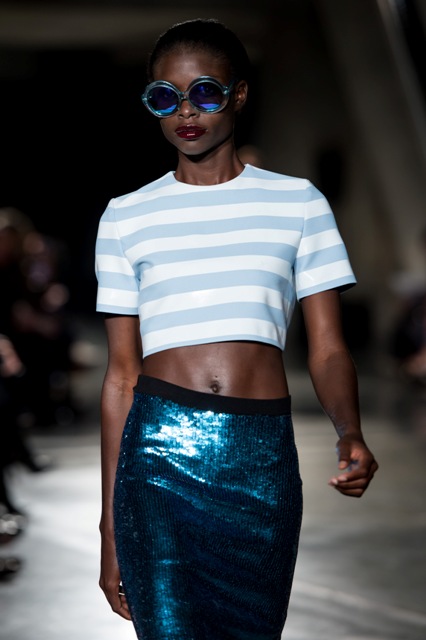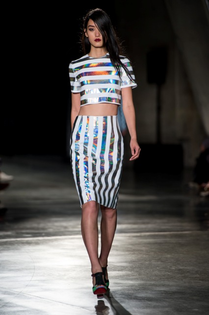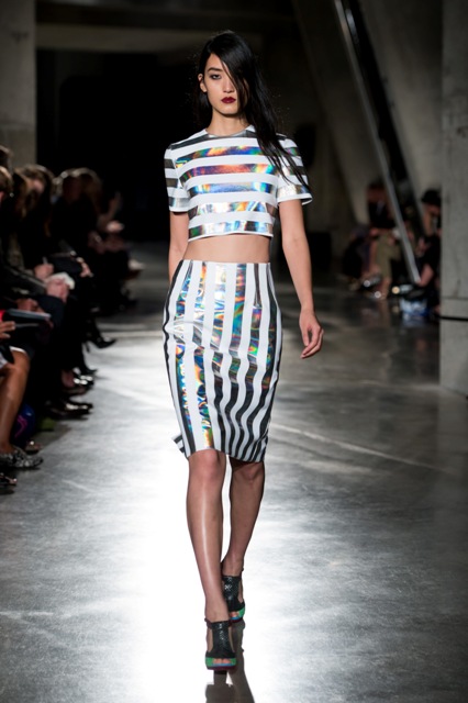 Princess Catherine just wore Jonathan Saunders the other day on her tour. One of his tamer pieces, obviously. I’m so into these wrapping paper stripes. Look how bright and shiny and happy they are coming down the runway!