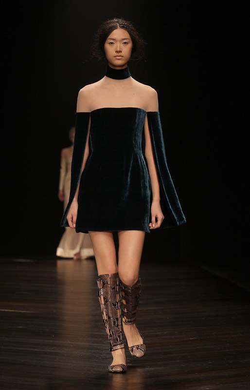 There are several looks with a cape here. I particularly love the short cocktail dress with the cape built in so that you don’t have to worry about it falling over your shoulders while you stomp dramatic out of a room, creating wind with your exit.