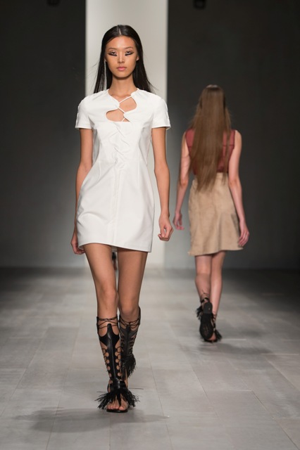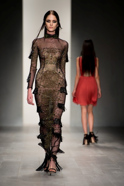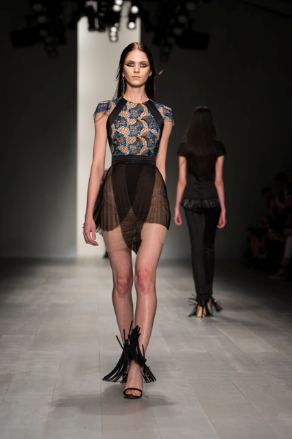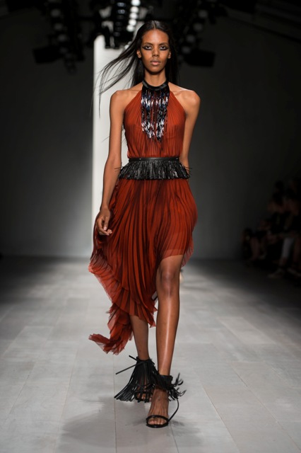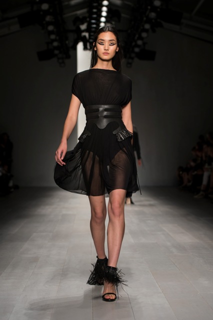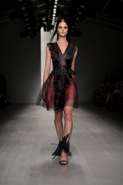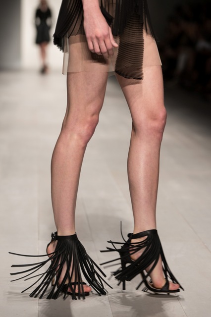Does it seem like a really fussy collection? Maybe it’s the shoes throwing me off and all that business flinging itself everywhere down below, taking attention away from the clothing which is already rather intricate. Too much, I think. And totally Kanye West’s girlfriend, right?