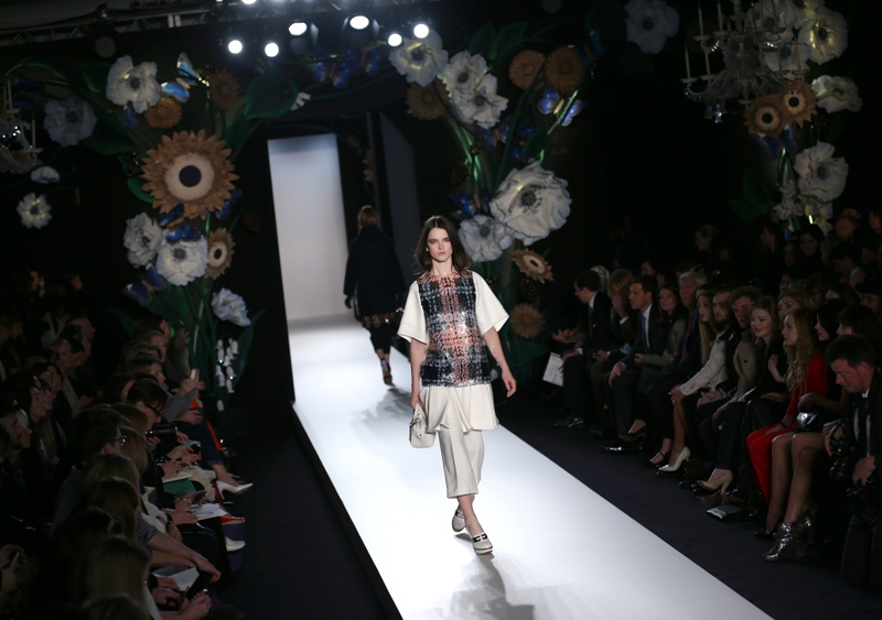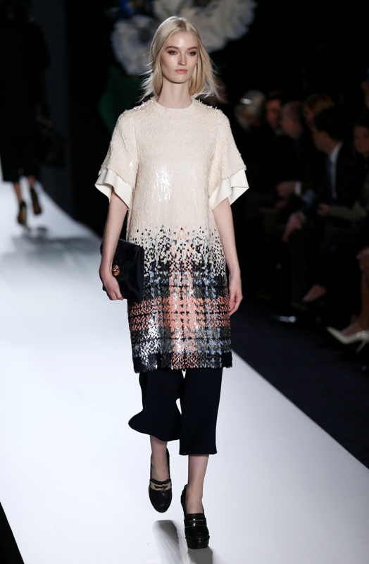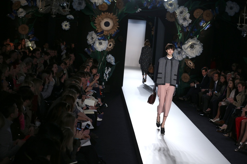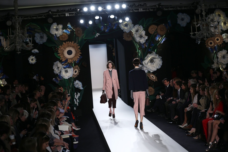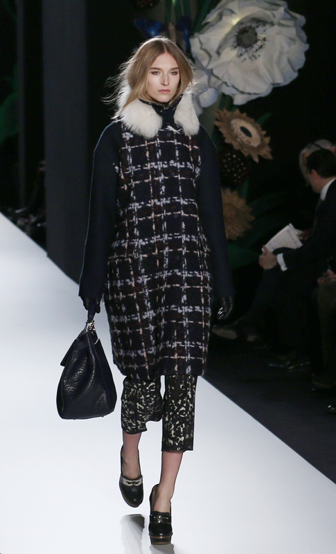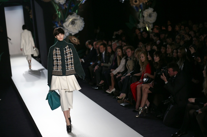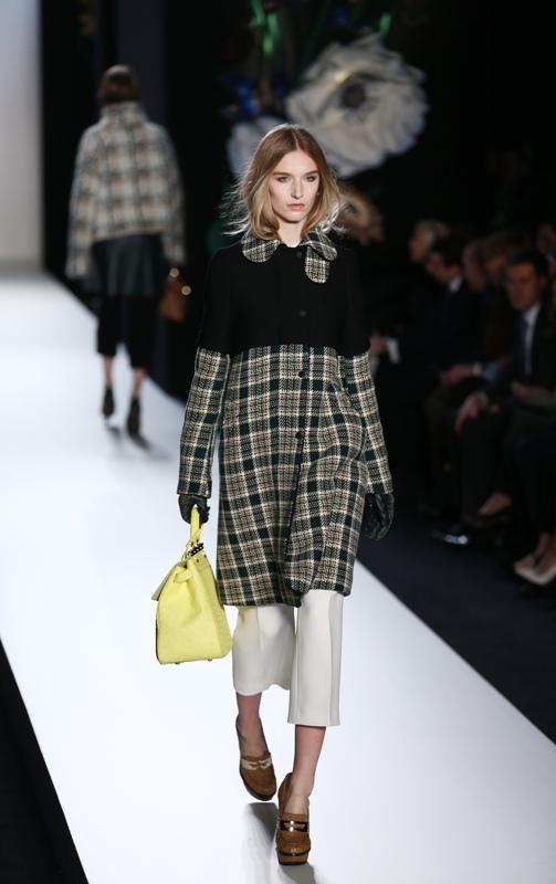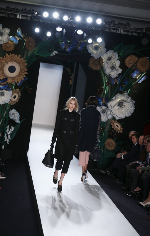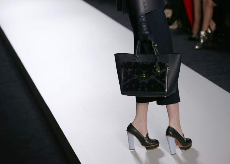 Love the idea of the cropped pants with a long coat the way it’s presented in the first photo attached. Where a year ago, Mulberry was doing a lot of fold-over wedges – click here for a refresher -- this time it’s an exposed platform, Charlotte Olympia styles, but on a loafer heel...that’s WHITE! SO good!