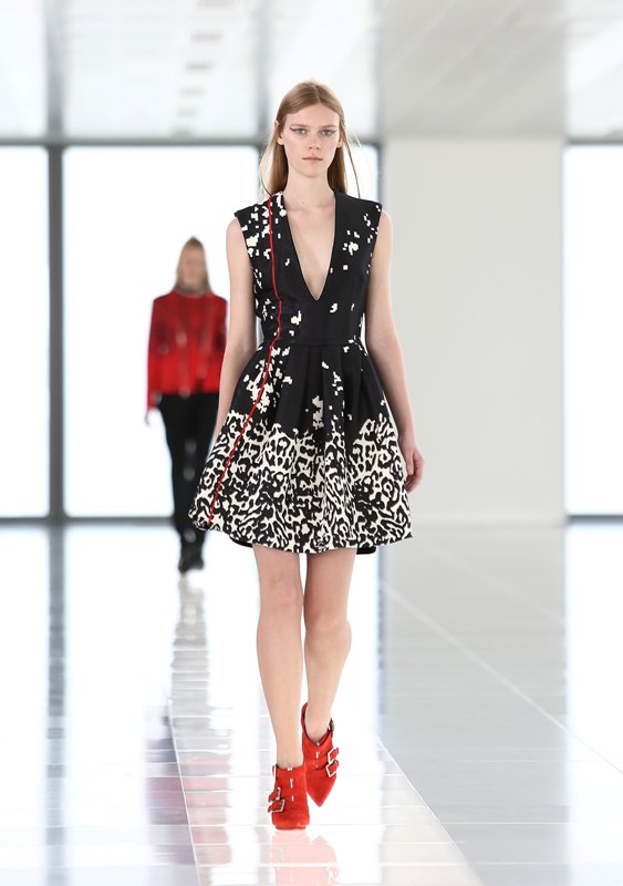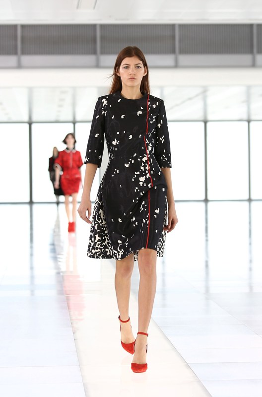 Holy sh-t, I like a red dress. I like it a lot! Check it – the first in the series. With black print and a black collar and white piping. Amazing, right? Of course it is. It’s Preen. Great, wearable collection all around.