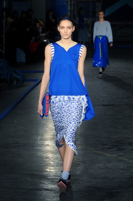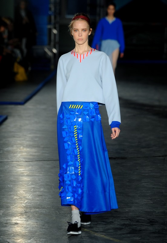 This collection is solid. The colours are great. The shapes are great. I looooove the length. That blue skirt with the mix materials and the hint of black and white stripe? BADASS. Especially the flats and socks.