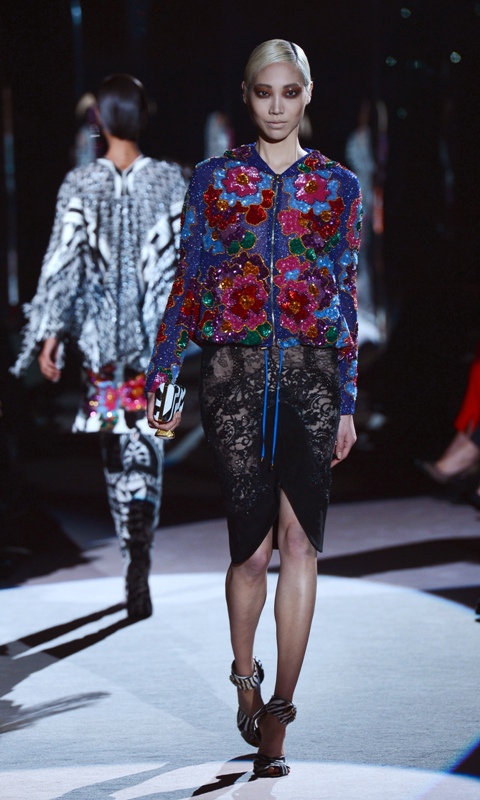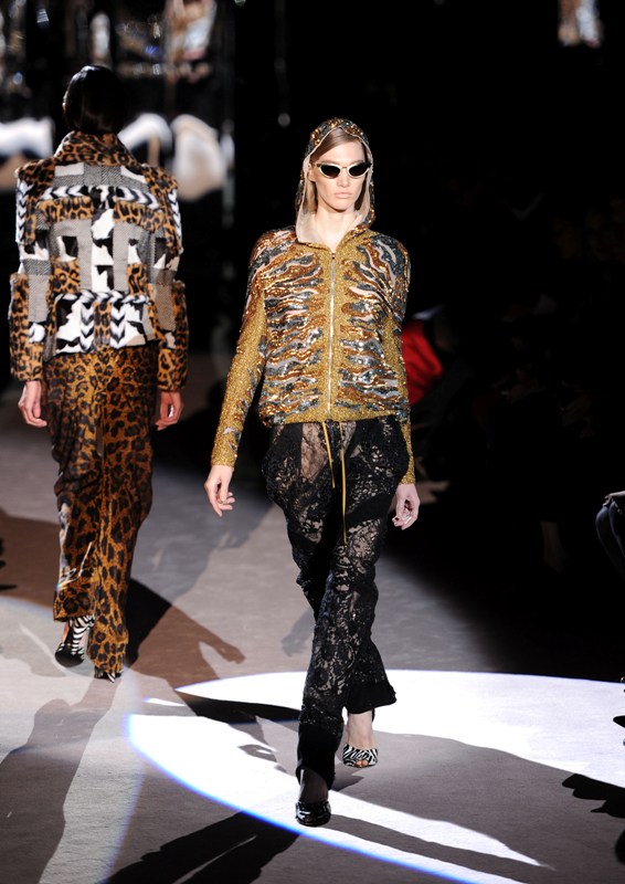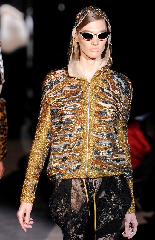 His first proper and public fashion show in almost 10 years. God, look at that beaded hoodie.