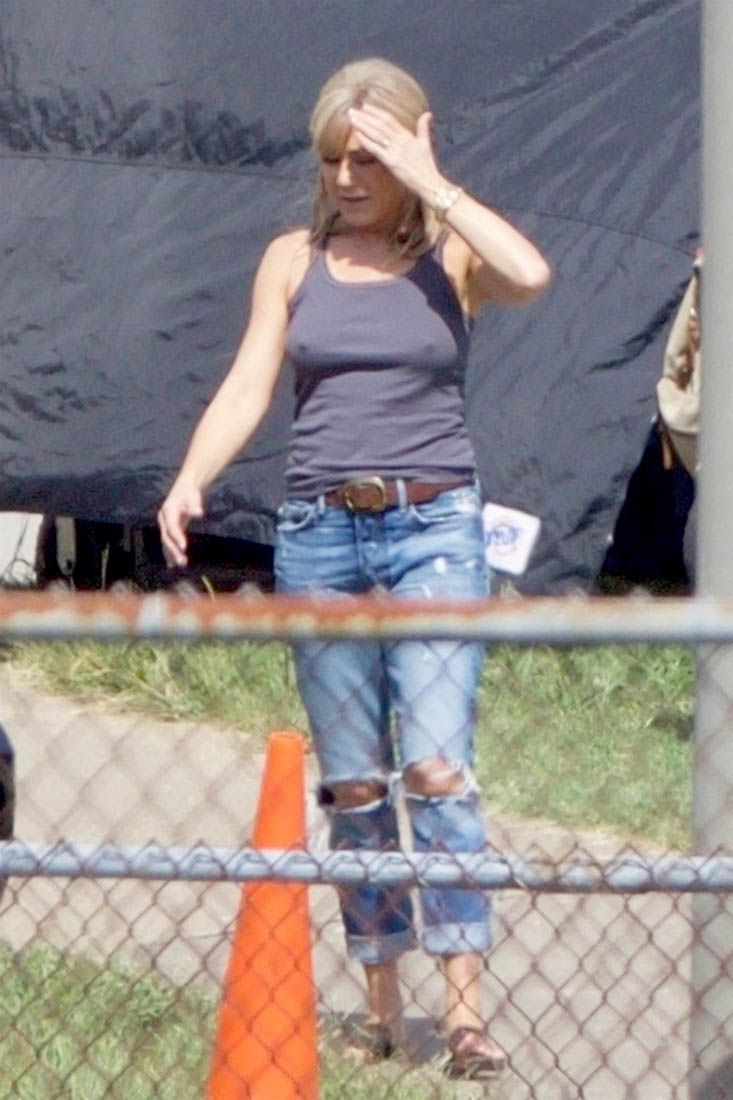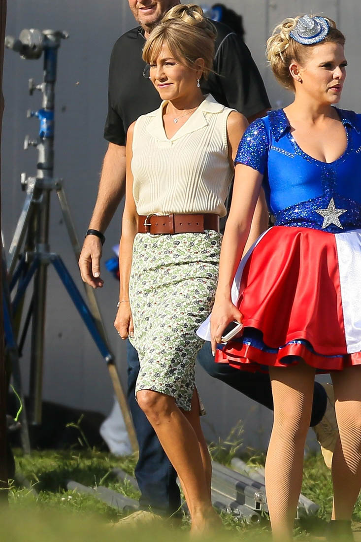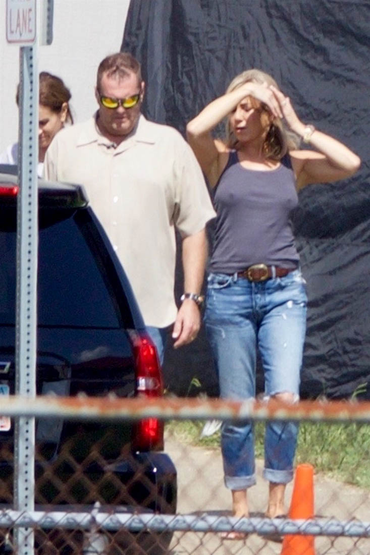 Here are some new shots of Jennifer Aniston taken last Friday on the set of Dumplin’ in Georgia. I’m also including shots I’ve never posted of her in costume, as Dumplin’ mother, a former beauty queen, that were taken when filming first started in July. This is excellent beauty queen mom hair.