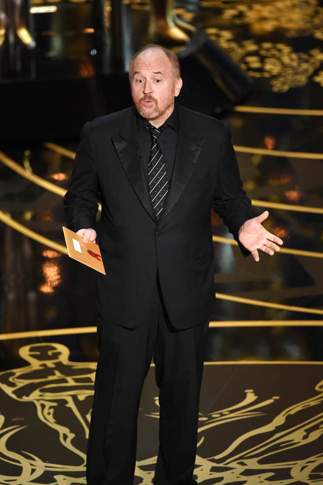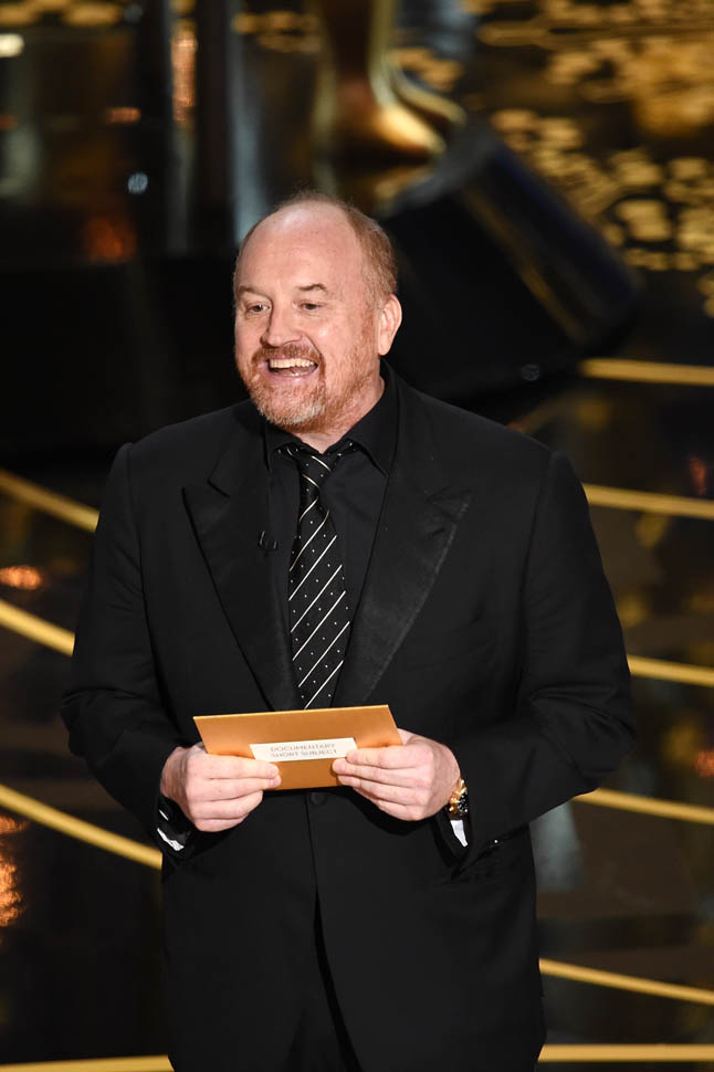 Do you think that Louis CK asked to present the award for best documentary short? Or do you think he was assigned? I’m willing to bet the latter, and that he wandered around for days trying to find the right ‘in’ to the category. Or maybe it came to him right away. Because Louis CK lives in this weird space, where he has to be everyman. It’s his job. He is obligated to point out to a roomful of rich assholes that there are people among them who aren’t just like them, and I feel like it would keep him awake at night if he missed an opportunity to do so. His whole comedy is talking about why he and other people are terrible. It must be a lot of pressure to get it quite right, and I feel like he’s vigilant in looking for the asshole angle.